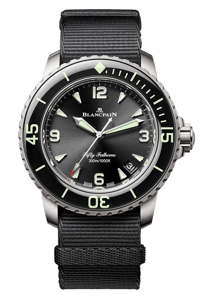 Launched in 1953, the Fifty Fathoms is the first true diver's watch. Created by a diver to meet the needs of underwater exploration, it was chosen by diving pioneers and combat diver corps around the world as a professional timekeeping instrument. With its water resistance, robust doubled-sealed crown, self-winding movement, contrasting dark dial with luminescent indications, lockable rotating bezel and anti-magnetic protection, the Fifty Fathoms has become an indispensable instrument for divers on their underwater missions. These key signature elements that established the Fifty Fathoms as the archetypal diver's watch continue to define the identity of such timepieces for the entire watch industry. This year, Blancpain releases the Fifty Fathoms Automatic in 42.3 mm. Housing powerful calibre 1315, this timepiece will provide watch lovers with precision, reliability, and performance, in a different size.