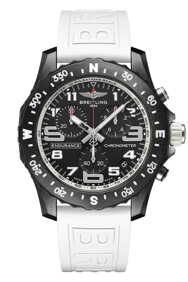 Designed to be both a lightweight watch for athletes and a casual, everyday sports chronograph, the Endurance Pro perfectly blends high precision & innovative technology with a vibrant & colorful design. It is the ultimate athleisure watch. Designed for men and women whose active lives blend a professional mindset with a sporty lifestyle, the Endurance Pro is equal to the challenges of a rigorous workout but fashionable enough for everyday wear. The Endurance Pro features an ultra-light Breitlight® case, a robust material 3.3 times lighter than titanium and 5.8 times lighter than stainless steel. Non-magnetic, thermally stable and hypoallergenic, Breitlight® is highly resistant to scratches, traction and corrosion. It also has a touch that is warmer than metal and a slightly textured effect accentuating the originality of the design. Exclusive to Breitling, it is 100% Swiss-made. Offered with a set of colorful dial and rubber straps fitting a Breitlight® double tang-type buckle, the Endurance Pro can also be paired with one of Breitling’s colorful Outerknown ECONYL® yarn NATO strap. Powering the Endurance Pro is Breitling’s Caliber 82, a COSC-certified SuperQuartz™ chronograph delivering exceptional precision.