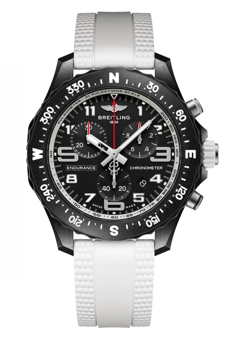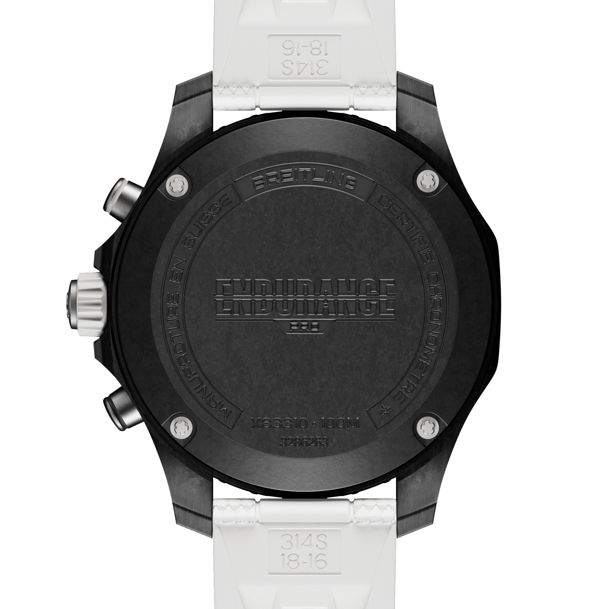 This Endurance Pro features an ultra-light 38mm Breitlight® case, a robust material 3.3 times lighter than titanium and 5.8 times lighter than stainless steel. Non-magnetic, thermally stable and hypoallergenic, Breitlight® is highly resistant to scratches, traction and corrosion. It also has a touch that is warmer than metal and a slightly textured effect accentuating the originality of the design. Exclusive to Breitling, it is 100% Swiss-made.