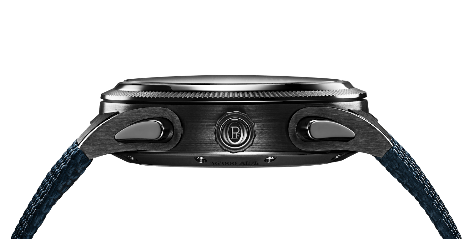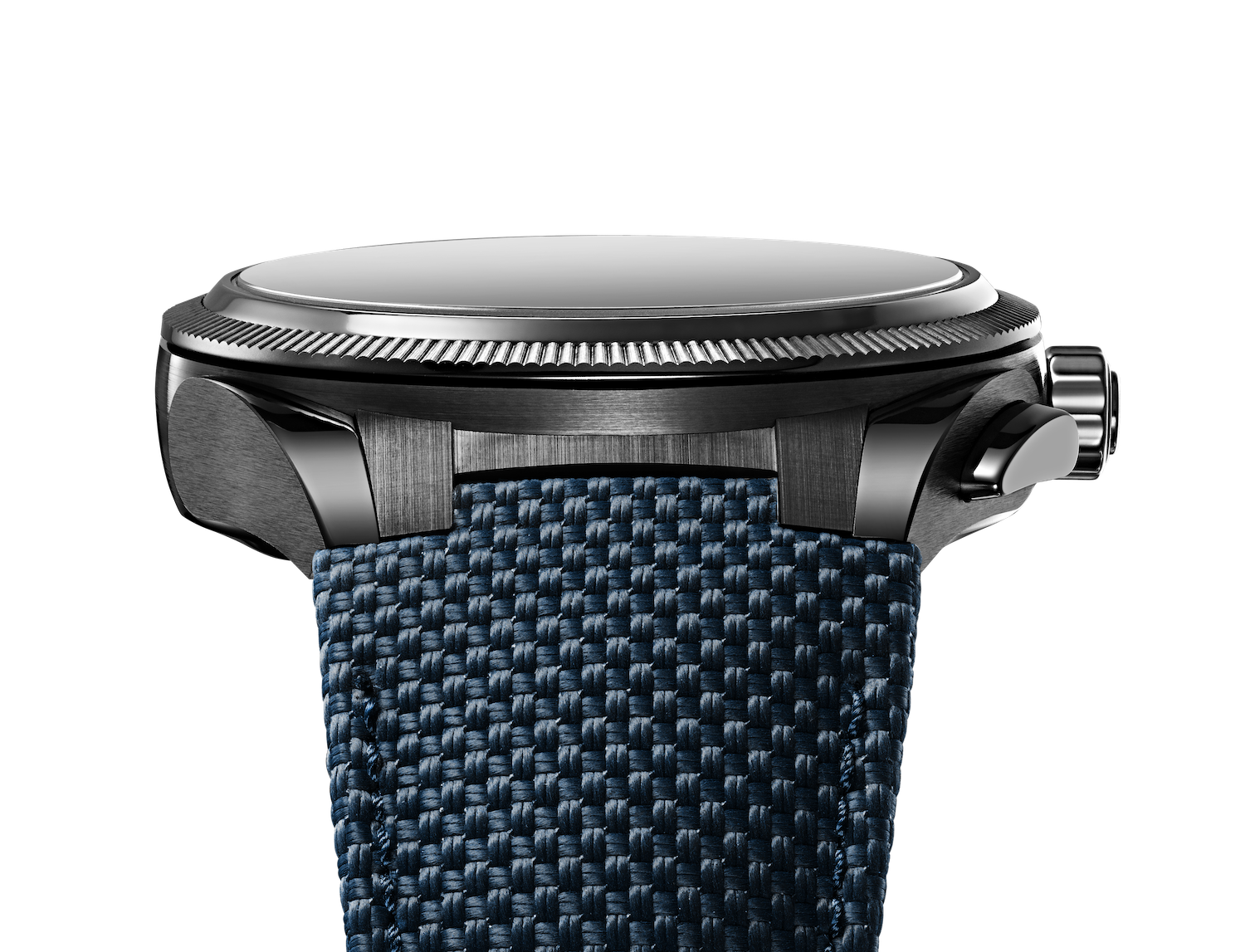 Affixed in seamless fashion to the case is a custom rubber strap with its own texturized Cordura rubber surface, designed to withstand all outdoor conditions while balancing the quiet sophistication and prestige encapsulated by a fine Parmigiani Fleurier watch.