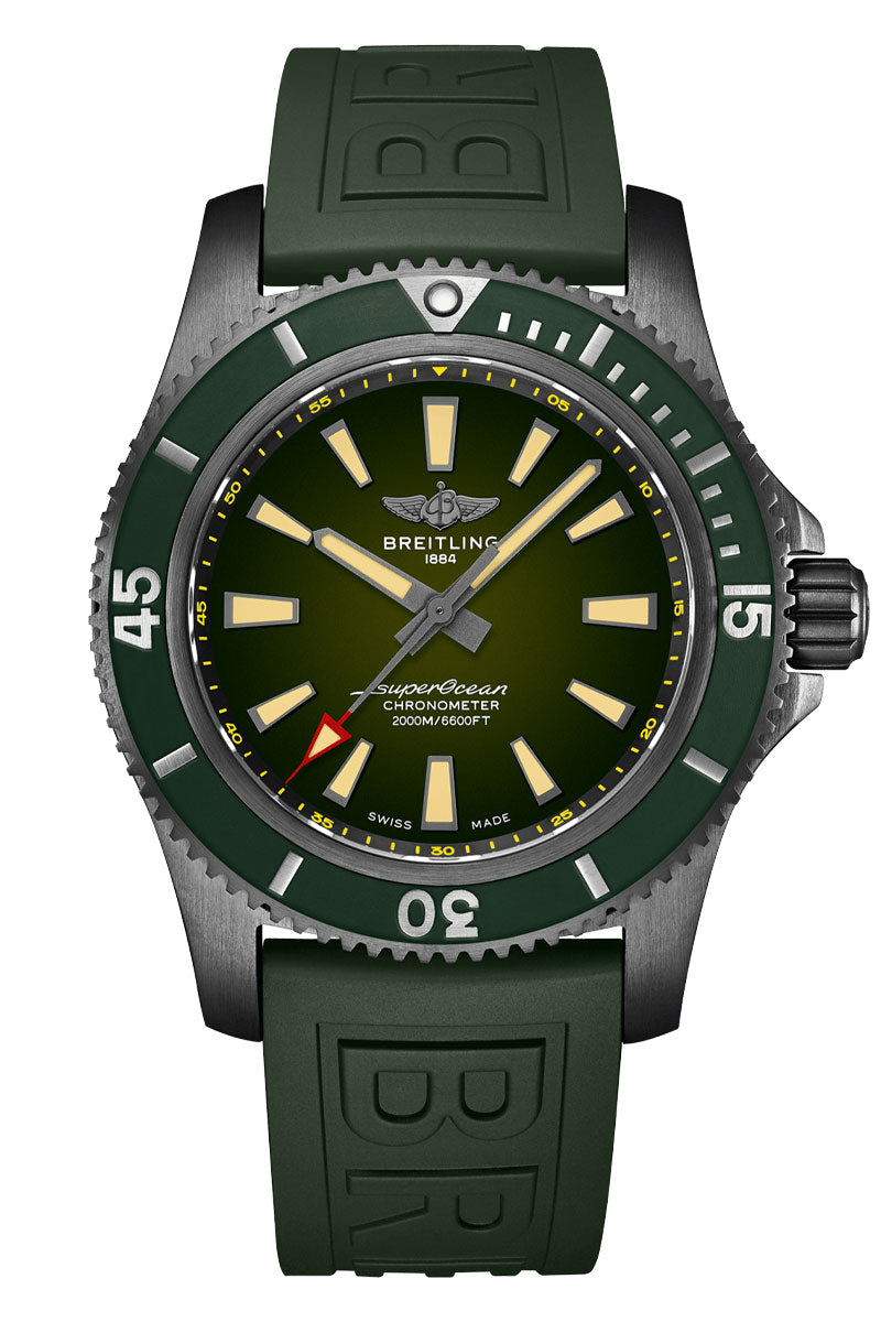 The Superocean Automatic is designed as a high-performance dive instrument that combines serious capability with contemporary style that's up to any challenge: diving, surfing, or just swimming. Built around a sturdy stainless-steel case matched with a bold, colorful dial – the Superocean Automatic is ready to descend to the deepest seas, while ensuring enough style for adventures that stay a little closer to shore.