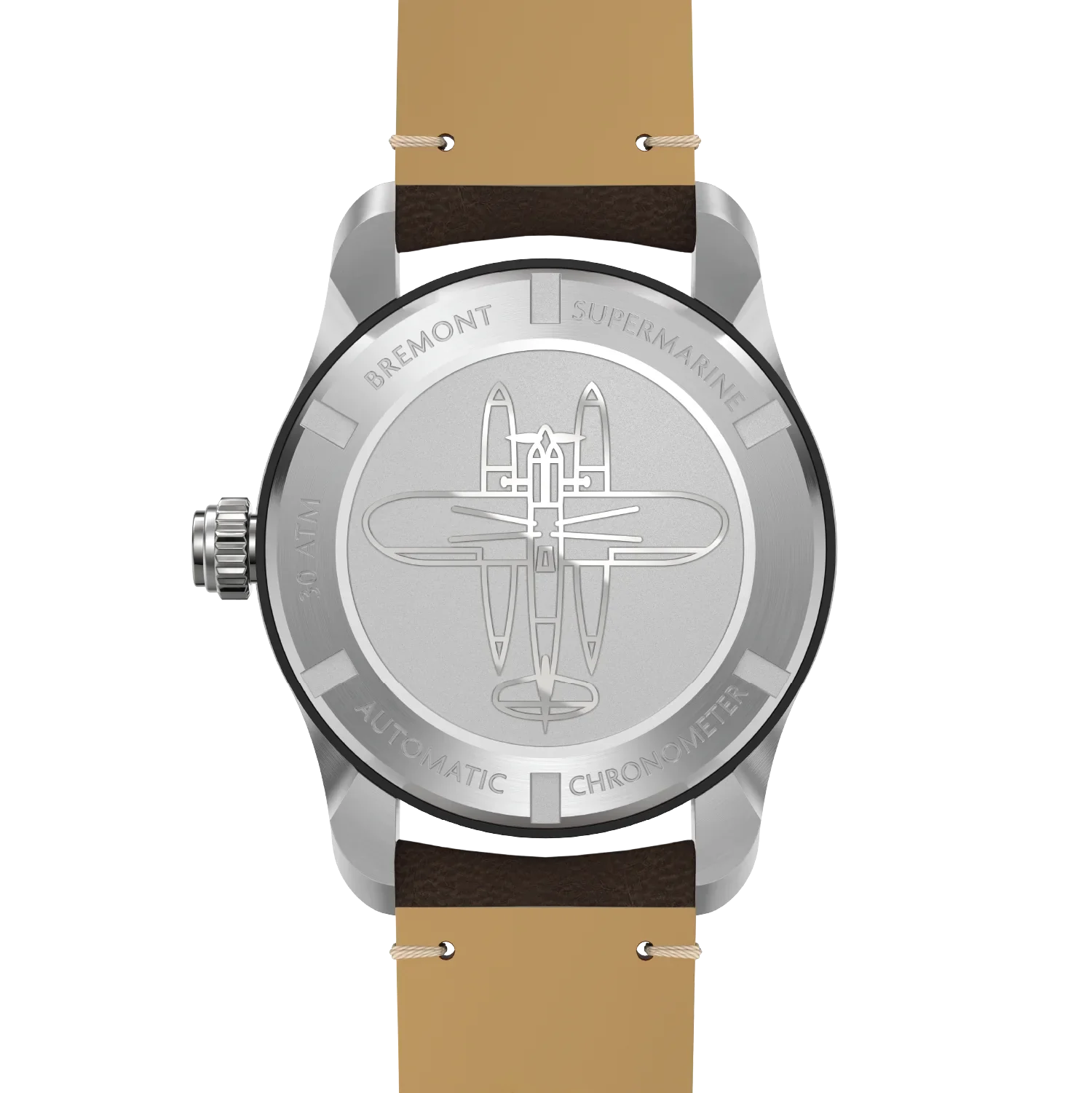 • Caseback: Solid stainless steel screwdown with Supermarine airplane engraving