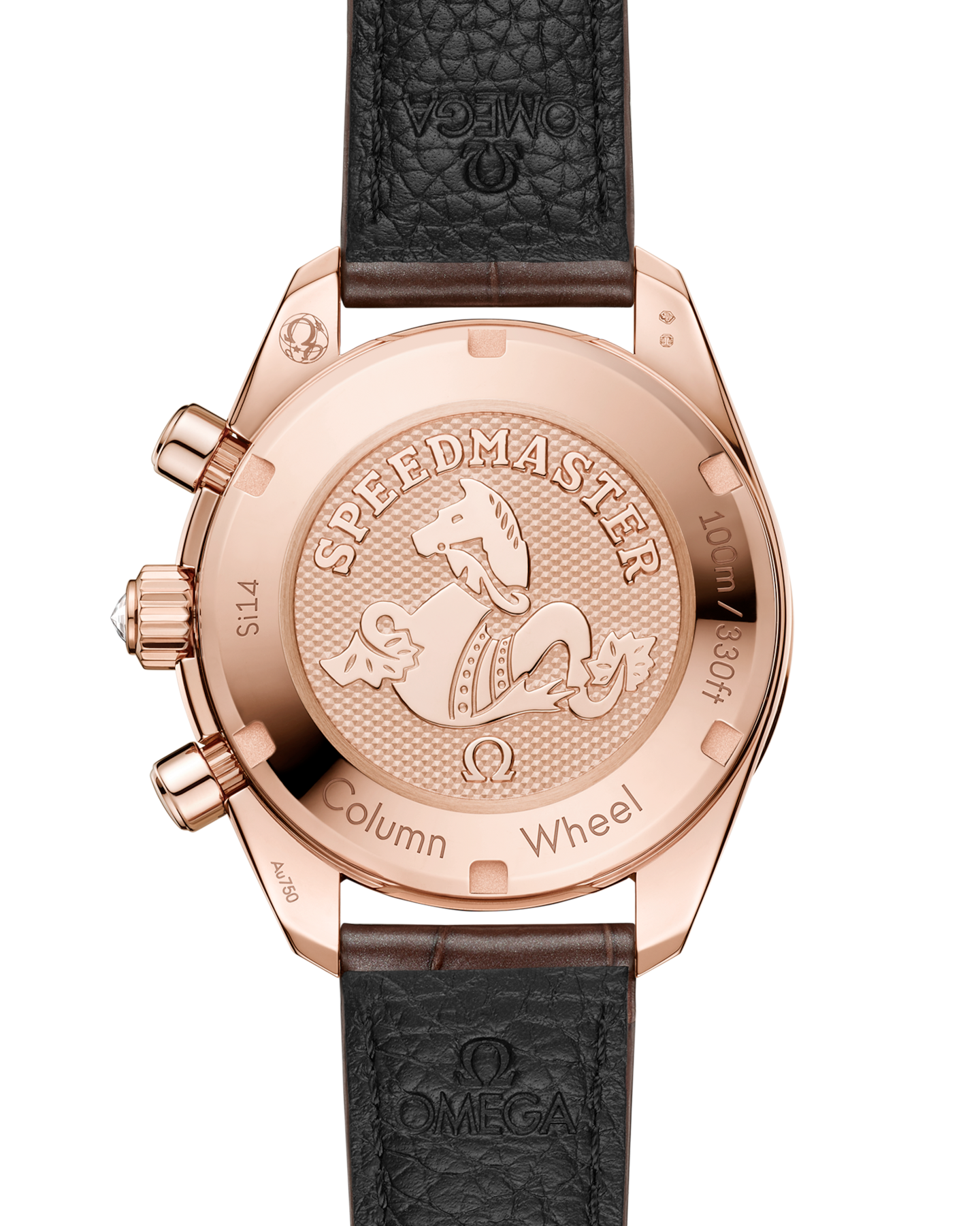The watch has a brown leather strap with 18K Sedna™ Gold foldover clasp buckle. Its screw-in caseback is stamped with a Seahorse medallion. Providing the power is the Omega Co-Axial Calibre 3330.