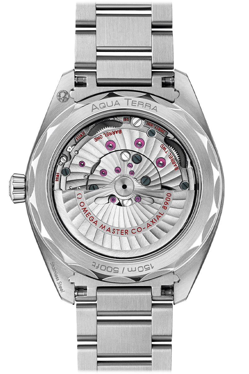 The Seamaster Aqua Terra is a superb tribute to OMEGA’s rich maritime heritage. In this 41mm model, the symmetrical case has been crafted from stainless steel, with a wave-edged design featured on the back.