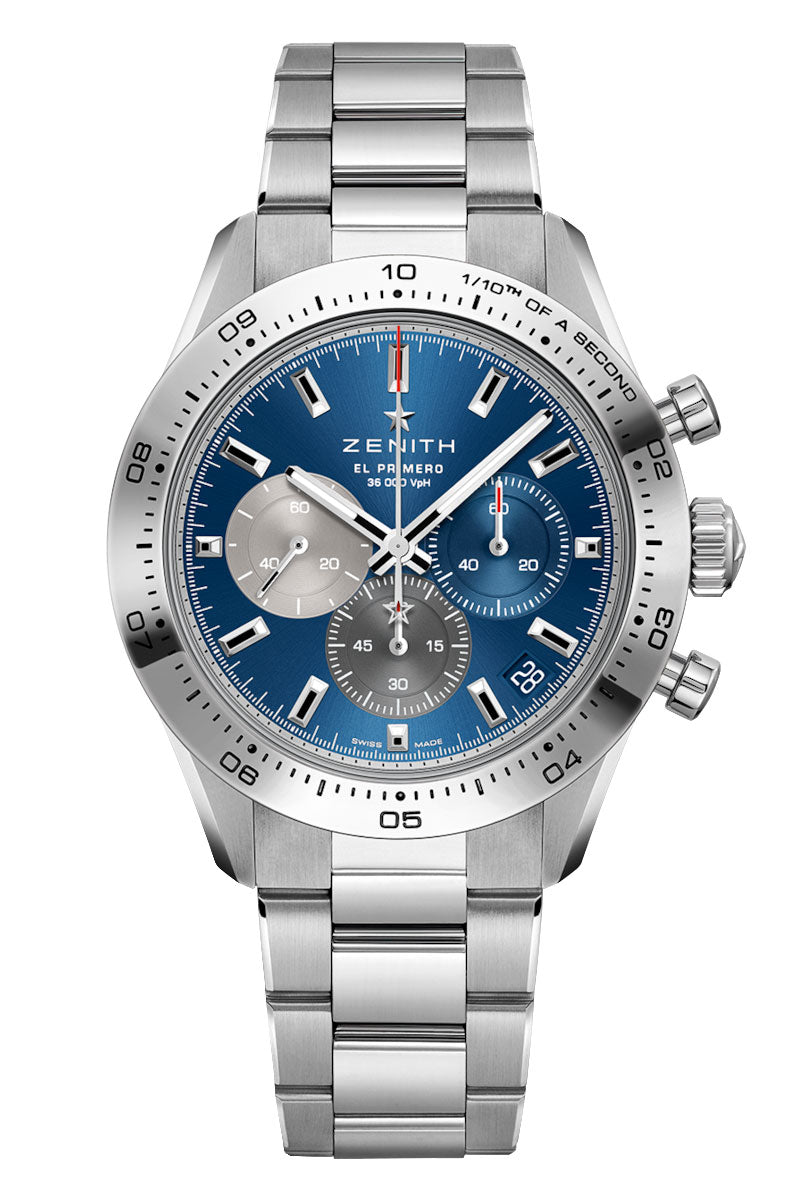A descendant of the El Primero lineage through and through, the unique heritage of the Zenith Chronomaster Sport unfolds with a more refined dial, an integrated steel bracelet with optimized comfort, enhanced finishing details, an ever more accurate search for proportions and an extremely precise tenth of a second reading. Crafted in a sleek and robust steel case measuring 41 mm wide with pump-style pushers, the chic polished stainless steel bezel sets the new Chronomaster Sport apart from its contemporaries, while paying tribute to Zenith heritage models like the "DeLuca" and "Rainbow" references of the 1980s and 90s.