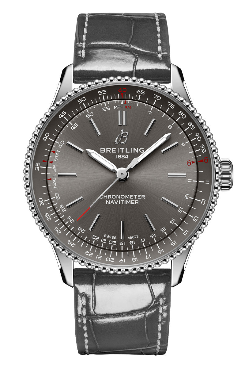 Breitling now offers the legendary Navitimer in a stripped-down time-only selection, which has been thoughtfully engineered around a new 36mm stainless steel case which retains the signature beaded rotating bezel and iconic circular slide rule that gives the Navitimer its unmistakable capability and appearance. It is powered by Breitling's own Calibre 17, a dependable automatic movement that’s ready for wherever the journey takes you.