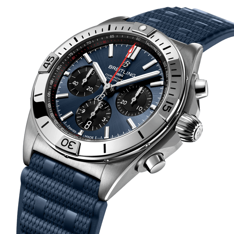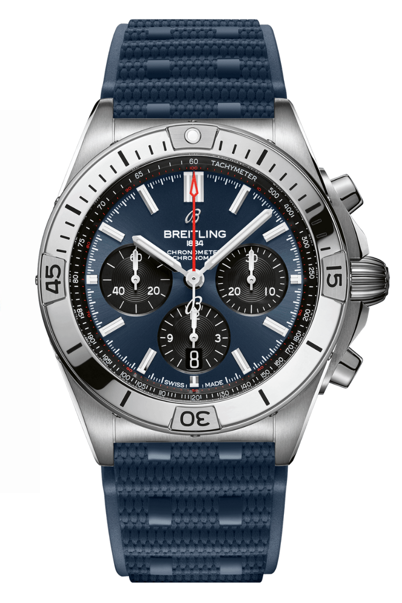 This new Chronomat is built around a stainless steel 42mm chassis that's finished on Breitling's signature 'rouleaux' molded rubber strap. True to the original, it is powered by the in-house Breitling Manufacture Caliber 01, a COSC-certified chronometer.