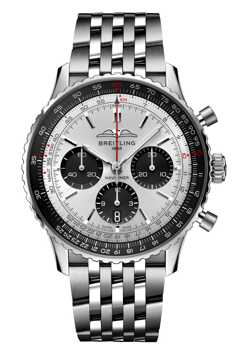To create the new Navitimer, Breitling preserved the most recognizable aspects of the icon's design code. From a distance, this is unmistakably a Navitimer, with its circular slide rule, baton indexes, trio of chronograph counters and notched bezel for easy grip. Up close, however, its modern refinements come through loud and clear.