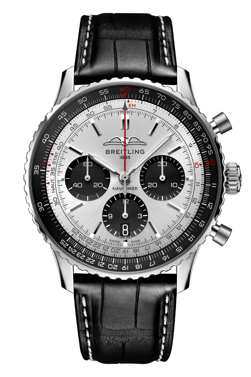 To create the new Navitimer, Breitling preserved the most recognizable aspects of the icon's design code. From a distance, this is unmistakably a Navitimer, with its circular slide rule, baton indexes, trio of chronograph counters and notched bezel for easy grip. Up close, however, its modern refinements come through loud and clear.