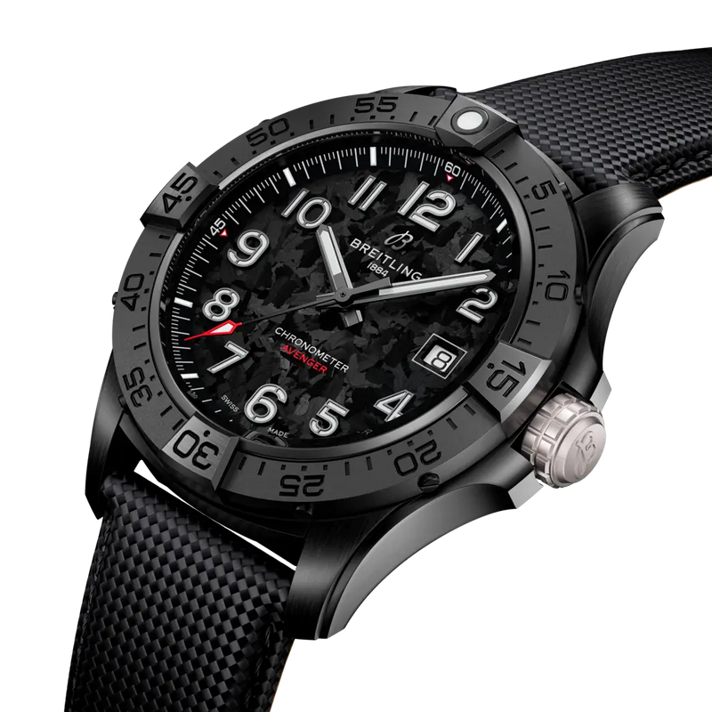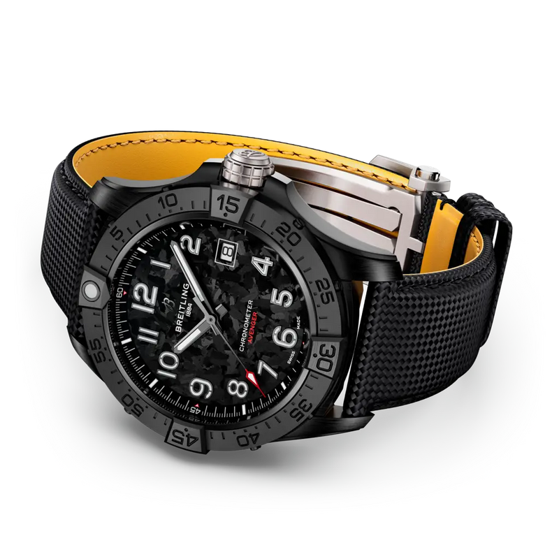 Built for daring jet pilots, the Avenger is designed to take on the toughest cockpit environments and keep coming back for more. But you don’t need air force credentials to appreciate its bold design, exceptional resilience, and next-level functionality. Pairing the utility of a dual-time display with sophisticated modern style, purposeful aviation-inspired design elements, and dial selections drawn from military uniform shades, this modern Breitling Avenger is the most rugged cockpit instrument the legendary Grenchen manufacturer produces, and it shows in spades. And whether you can handle the g-force or not, you'll still fully appreciate the Avenger’s robust 300 meters of water resistance, its bold scratch-resistant ceramic case, tactile rotating bezel, and corrosion-resistant construction — all of which make it perfectly tailored for any adventure, from right here on earth all the way up at the edges of the stratosphere.