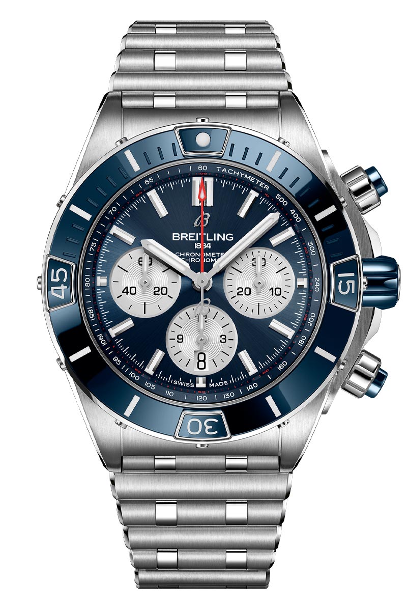 The Super Chronomat is water resistant to 200 meters, and is powered by the COSC-certified Breitling Manufacture Caliber 01, which provides about 70 hours of power reserve.