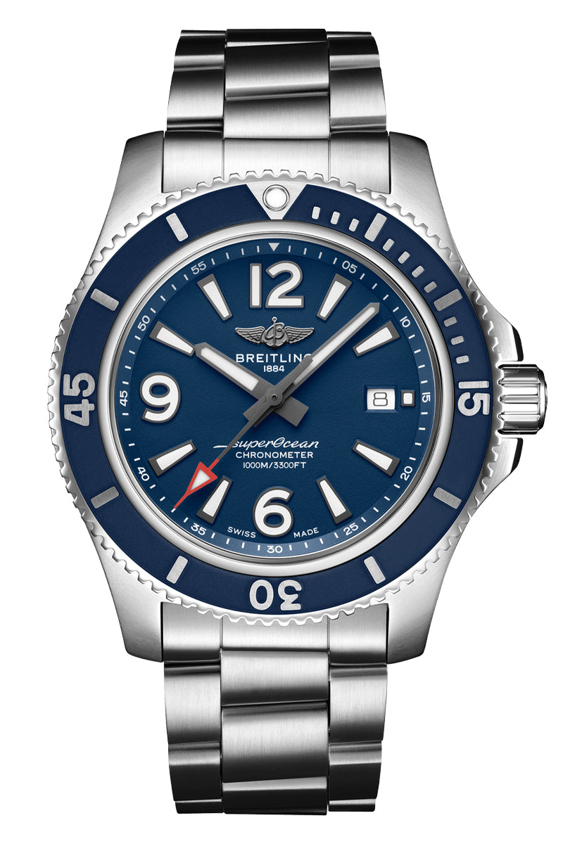 Sporty, fresh and colorful, the Superocean Automatic is designed as a high-performance dive instrument that combines serious capability with contemporary style that's up to any challenge: diving, surfing, or just swimming. Built around a sturdy stainless-steel case matched with a bold, colorful dial – the Superocean Automatic is ready to descend to the deepest seas (up to 100 bar / 1000 meters), while ensuring enough style for adventures that stay a little closer to shore.