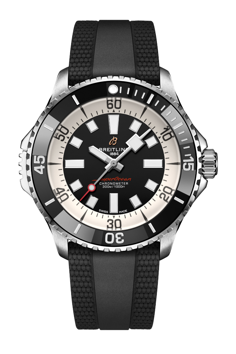 This next-generation Breitling Superocean diver revisits the distinctive, pared-down aesthetic of the original SuperOcean Slow Motion chronograph from the 1960s and 1970s, yielding a highly technical tool watch that marries a fully modern and thoughtfully engineered case design with just the right amount of nostalgia.