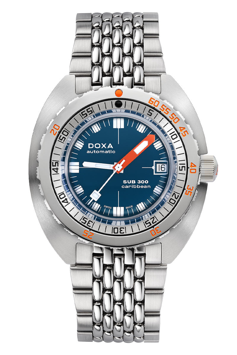 In 1967, DOXA launched the revolutionary SUB concept, considered to be the first truly purpose-designed diver’s watch accessible to a broader public. The radical innovations it introduced at the time soon made it the benchmark for professionals, too. Water-resistant to 30 bar, roughly equivalent to a depth of 300 meters, it was the first to feature a unidirectional bezel with a dual scale for depth and dive time to calculate a safe ascent without decompression stops. Most radical of all: the orange dial which greatly improved readability underwater.