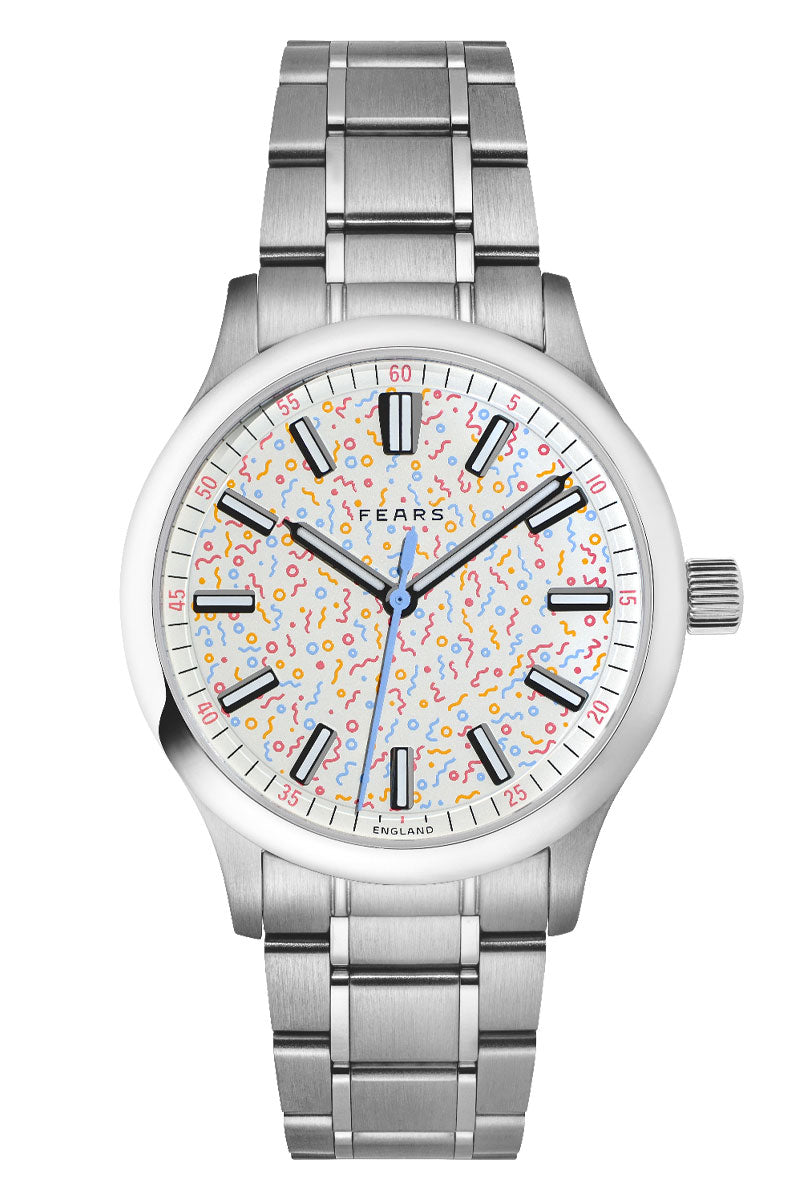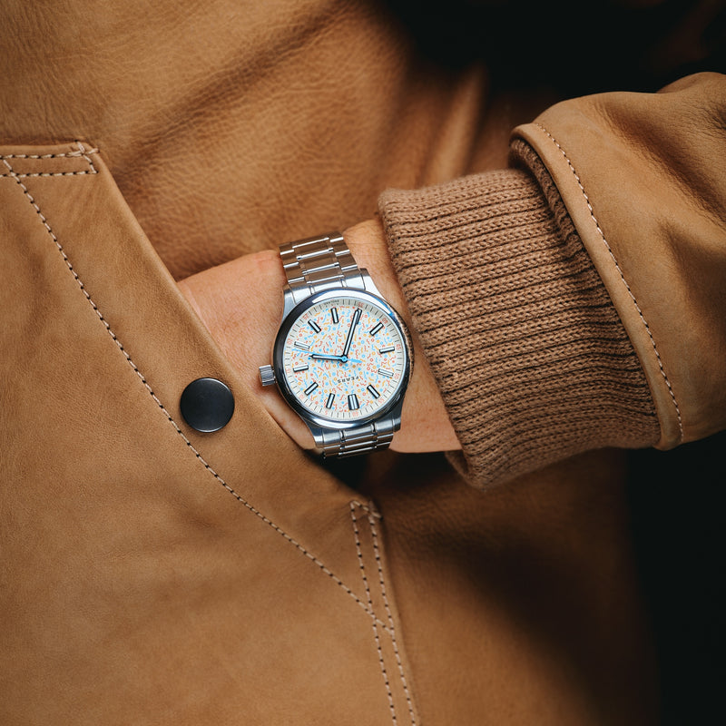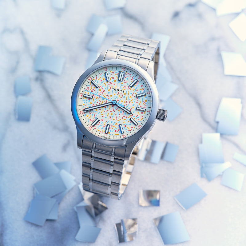 Taking its name from the Bristol street where the company was first founded in 1846, the Fears Redcliff is designed to be an elegant and sophisticated everyday timepiece. This Redcliff 'Confetti' is Topper's inaugural Burlingame Edition – a series of specially designed, non-limited collaborative watches available exclusively at Topper Jewelers.