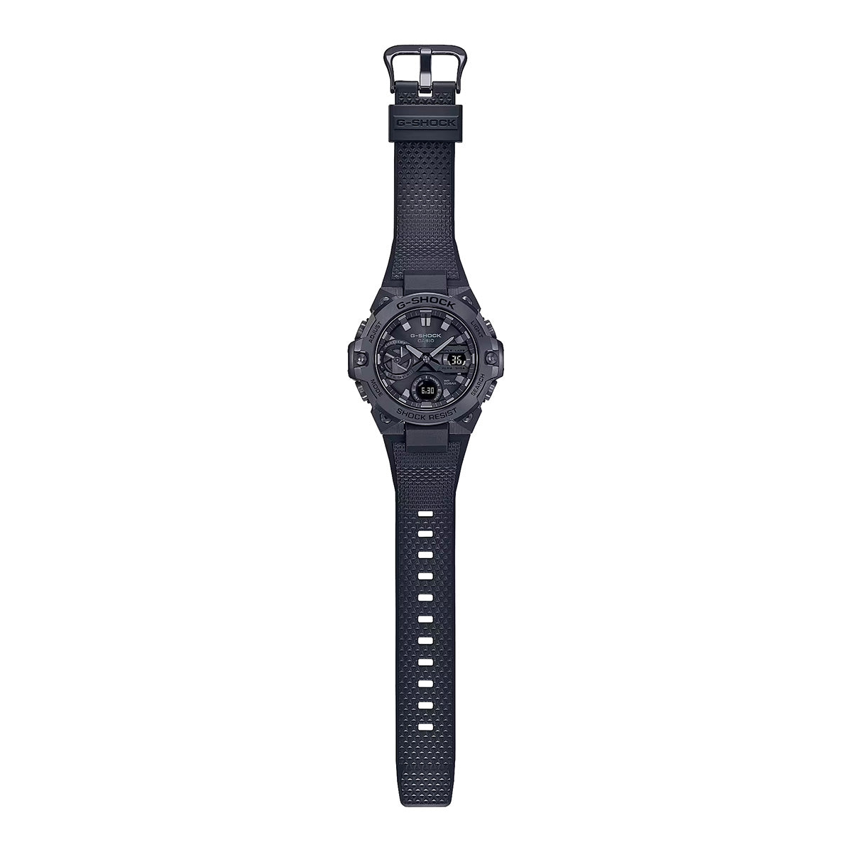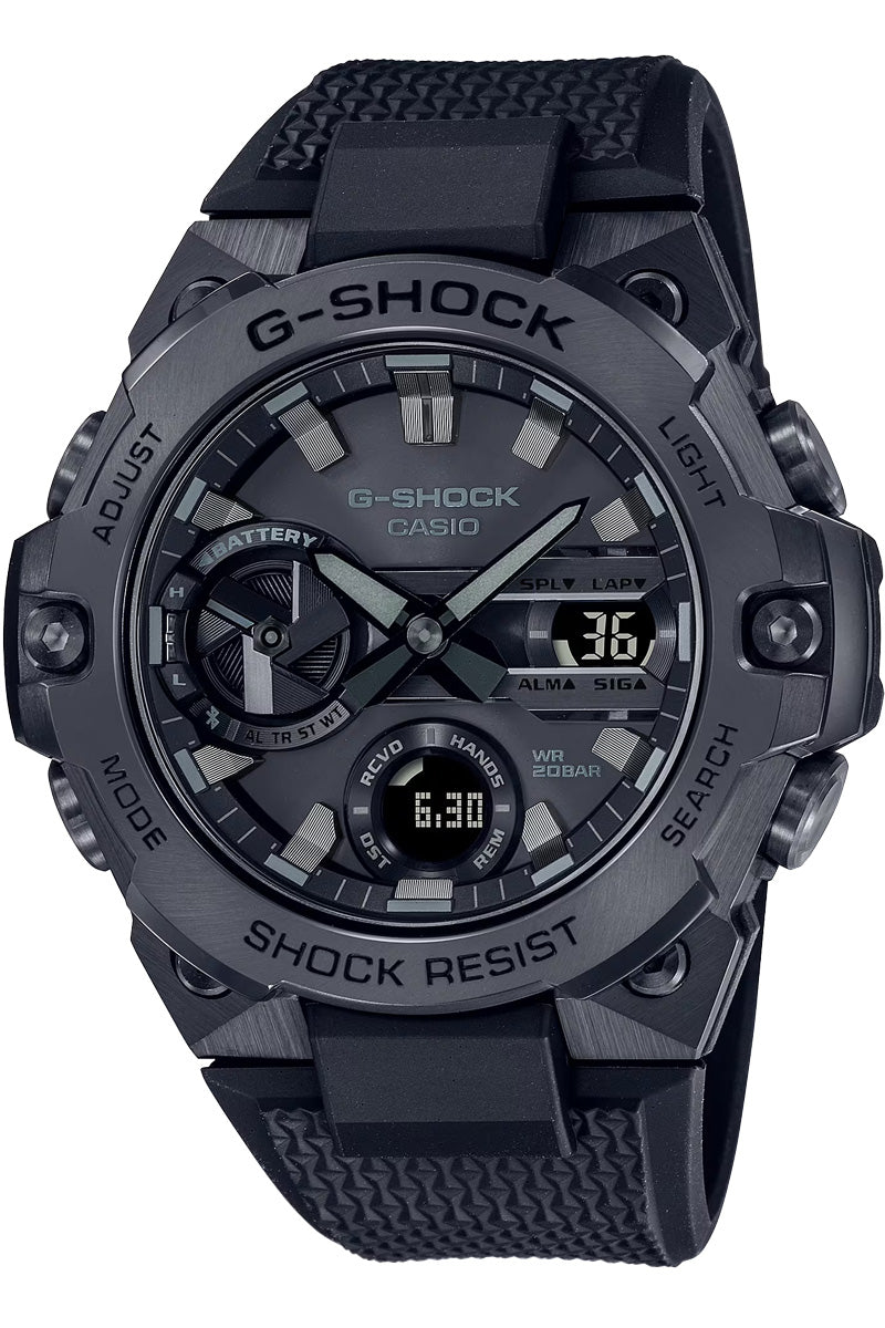 Tough construction meets stylish design in a black ion-plated metal bezel set against a base of jet black. With its slim combination module and Carbon Core Guard structure, the black-on-black take of the GSTB400 is a cool fashion statement ready for whatever you are.