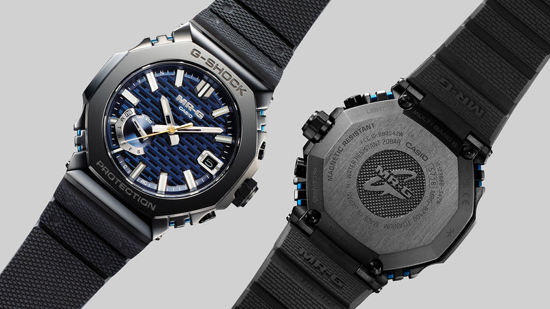 Immerse yourself in the blue serenity of the stunning G-Shock MRGB2100R, a proud addition to the MR-G line, the pinnacle of the venerable Japanese maker. Here, we have a dial inspired by the traditional Japanese art of interlocking woodwork called kigumi. This traditional art is reflected in the intricately assembled two-part structure of the indexes and the depth and dimension of the latticework on the dial. The tiny openings in the dial — the result of the highest precision process technology — let plenty of light through to the solar panels beneath to keep you up to speed.