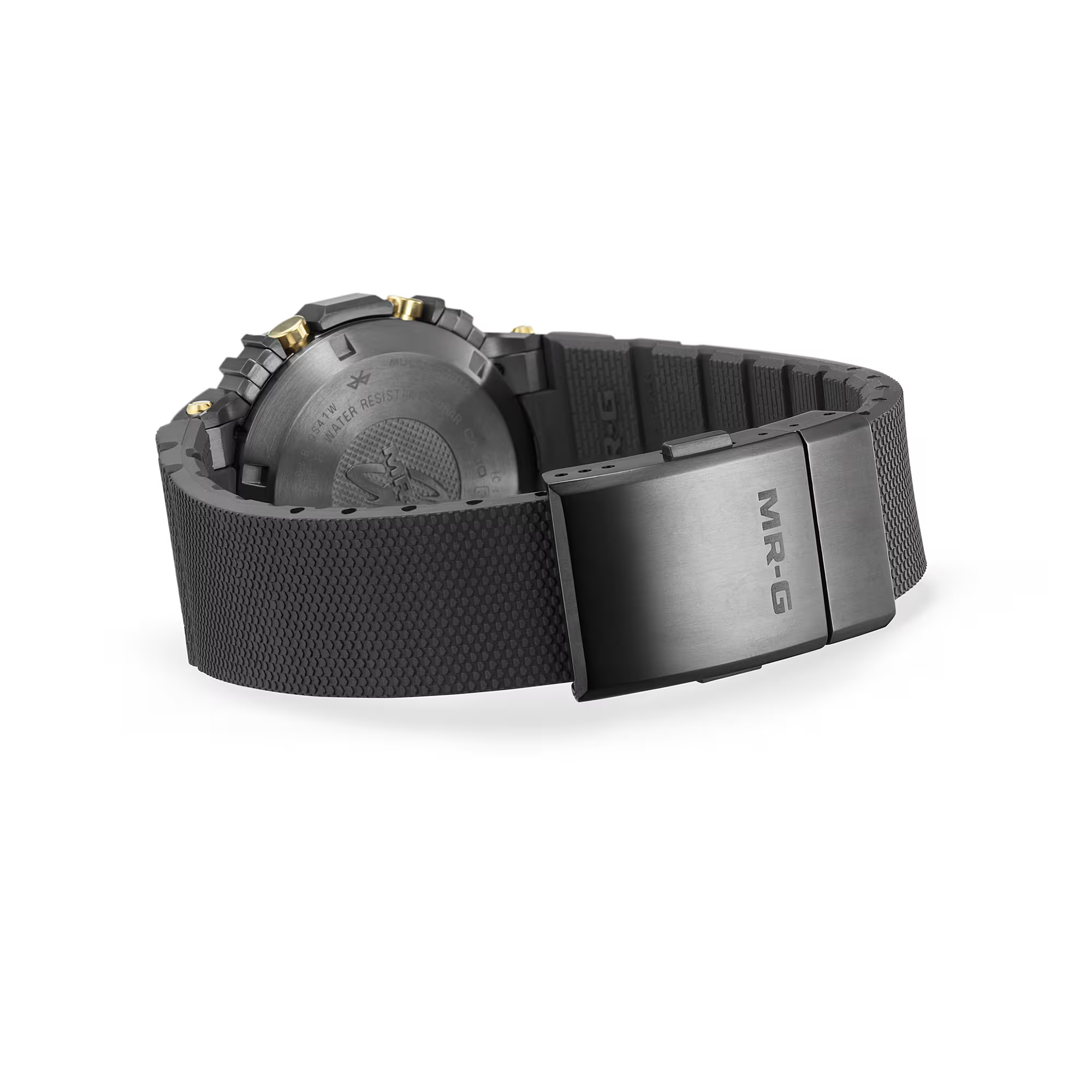This bezel alone consists of 25 different components, each individually polished for a stunning detailed texture. The state-of-the-art Multi-guard Structure incorporates flat springs and silicone buffers to the multi-component bezel, ensuring outstanding shock absorption to protect the dedicated MR-G module with blue-plated retainer plate.