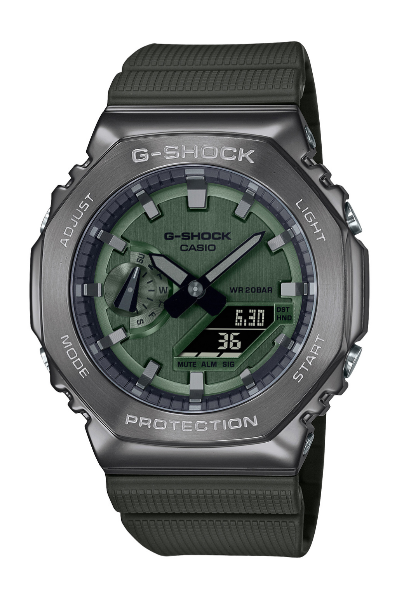 Go sleek and go sharp with the new hybrid G-SHOCK GM2100 "CasiOak," whose resin & stainless steel construction in the new octoganal shape delivers a bold and fresh interpretation on the original square-cased G-SHOCK design.