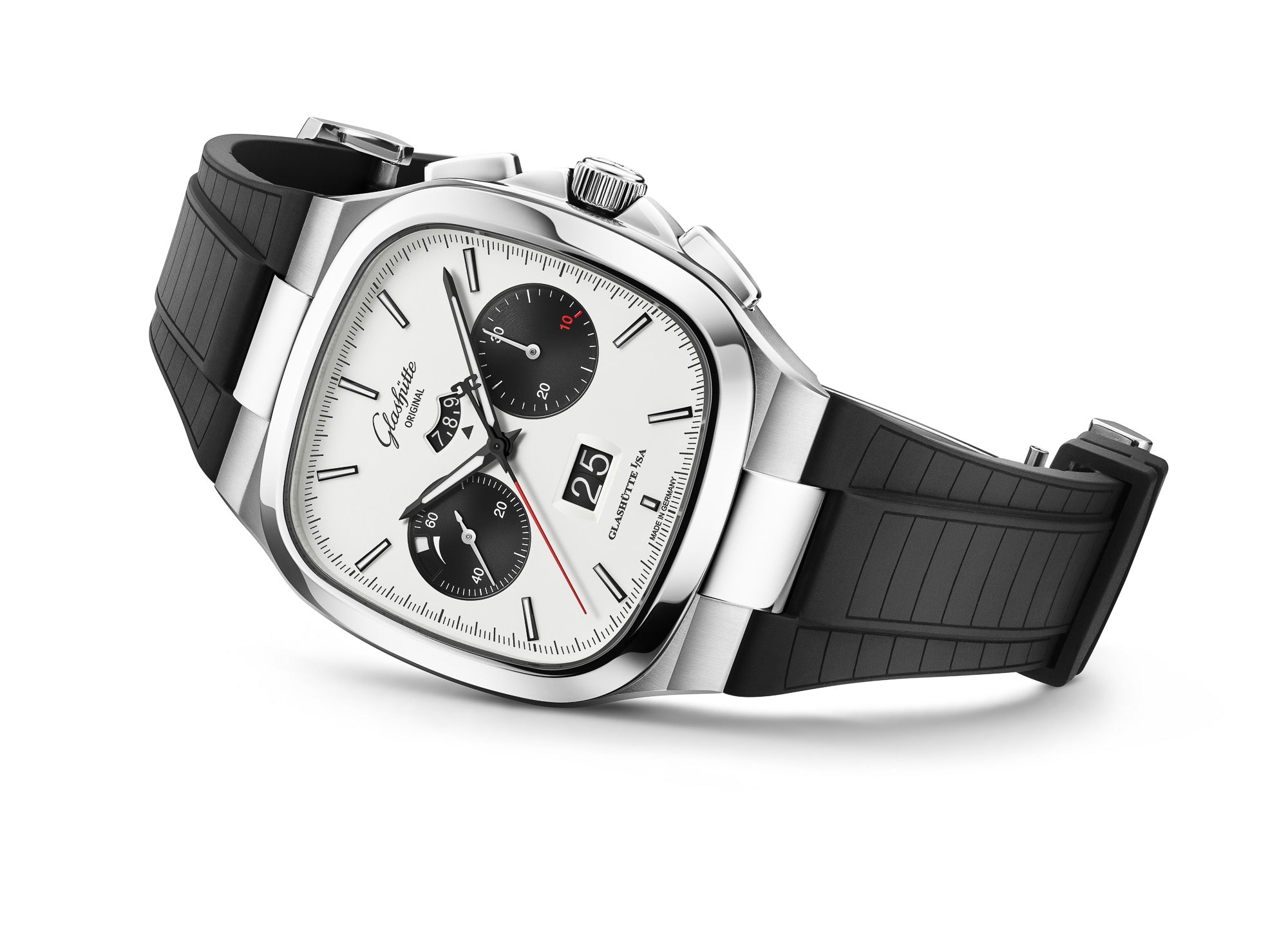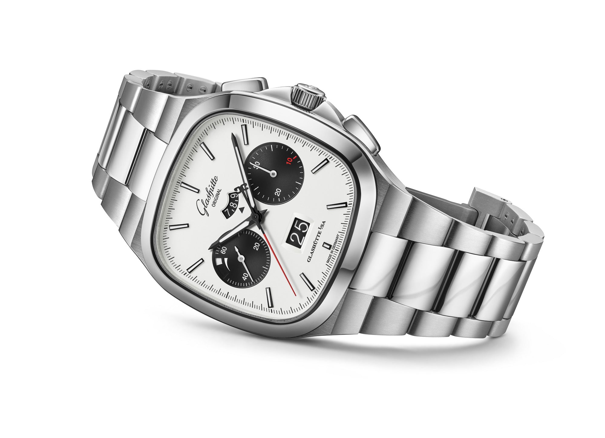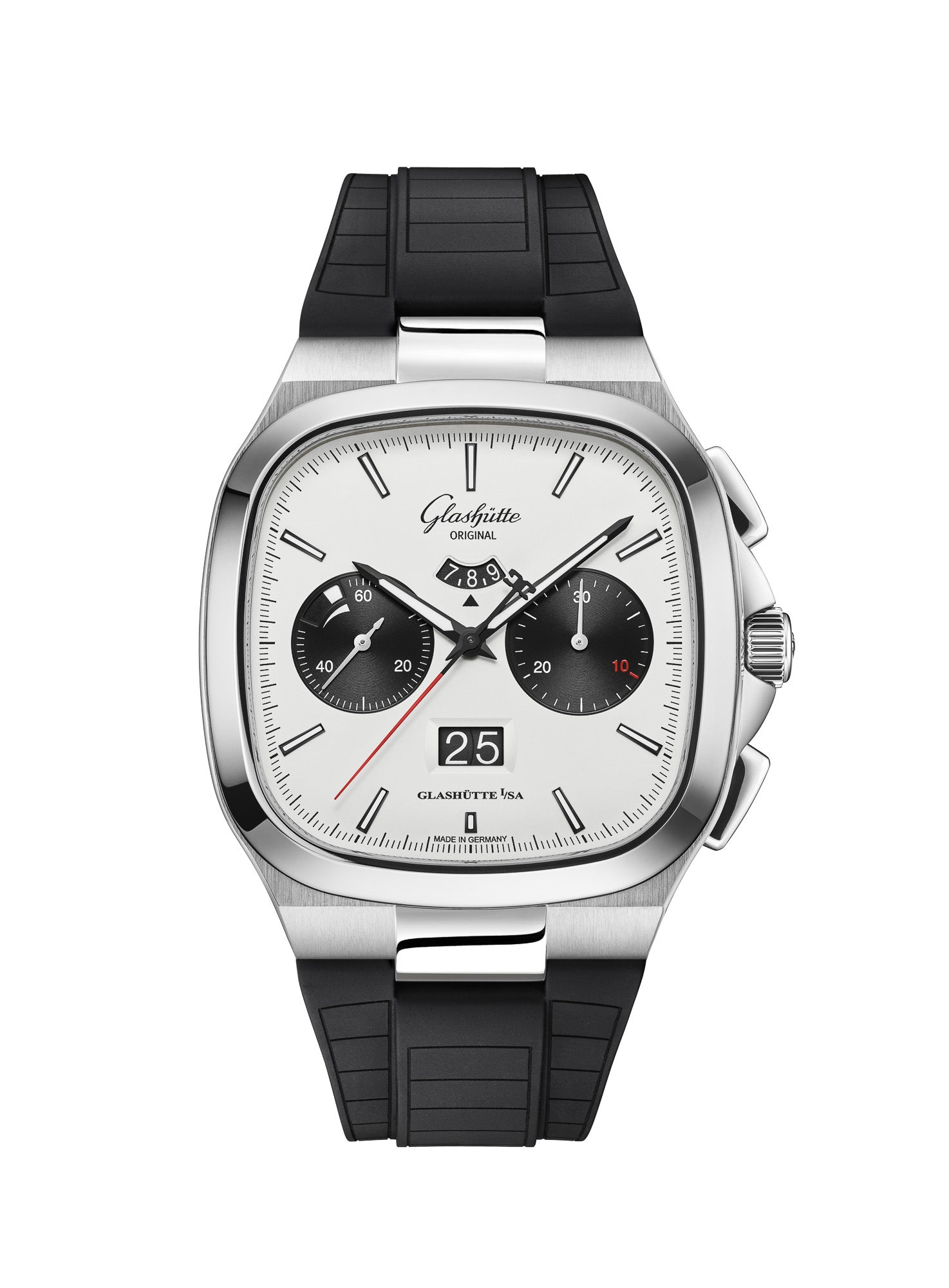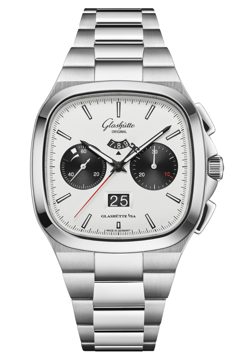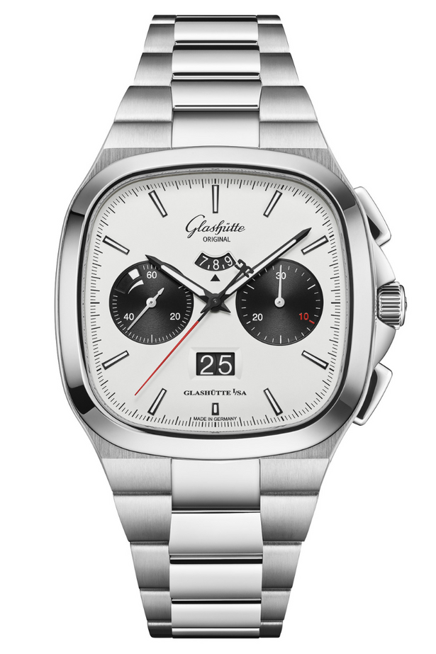 The Seventies Chronograph Panorama Date from Glashütte Original celebrates a world on the move in the 1970s, where travel, self-realization, flexibility and a return to nature became more outspoken social norms. Reserved exclusively for the North American collecting community, this newly updated version is presented in polished stainless steel, with its compact 40 x 40 mm diameter case whose rounded corners echoes the design icons of the dynamic decade it is named after.
