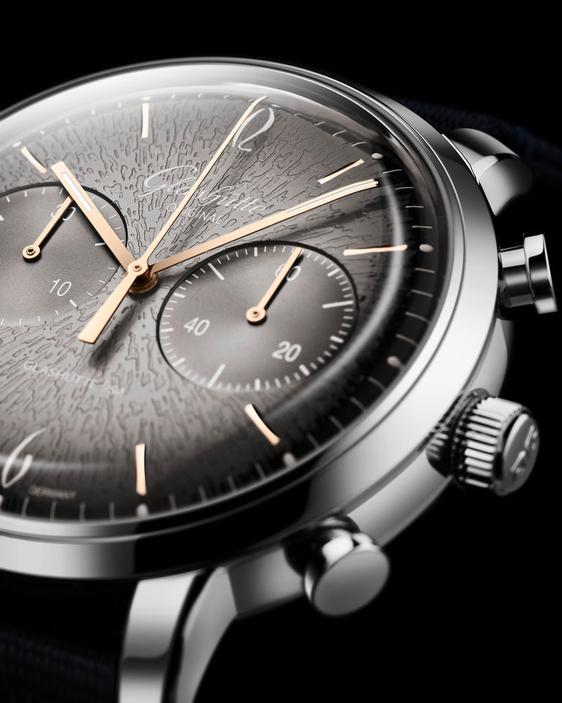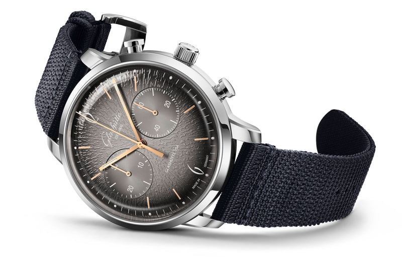 Inside, Glashütte Original's 39-34 automatic movement provides just the right rhythm. It drives the display of hour and minute and the small second, the second stop and the chronograph’s 30-minute counter reliably and with great precision. The manufactory movement beats at 4 Hz, and its individual components are delicately enhanced by hand – with the Glashütte stripes finish, for example, bevelled edges and polished screws. The watch is finished on a new textile strap made entirely from recycled fishing nets. And as is tradition with the Glashütte Original Annual Editions, this reference will be produced for only one year before being discontinued forever.
