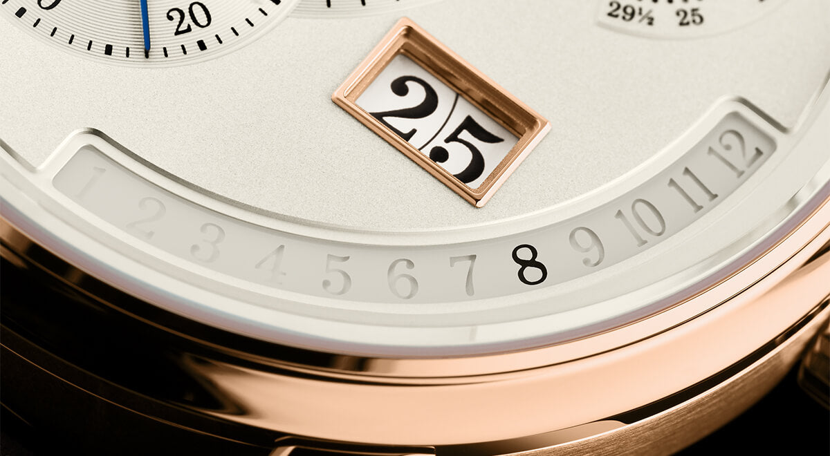 Compared to the perpetual calendar, the annual calendar is a relatively recent complication. It displays the date and month, taking the months with 30 and 31 days into account. Only once a year, on March 1st, is it necessary to correct the date. No question about it: this masterpiece is clearly a genuine original from the tradition-rich centre of Glashütte watchmaking.