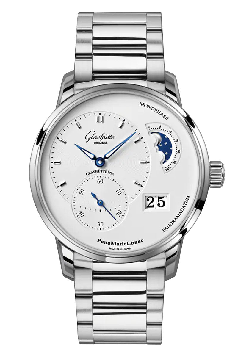 - Functions: Hour and minute, small second, Panorama Date, moon phase