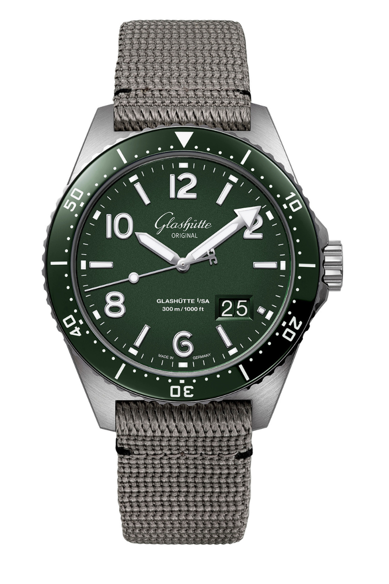 Green is considered the colour of nature, the colour of sustainability, life and growth. Its natural effect is positive and harmonious – on the wrist as well, as the new version of the SeaQ Panorama Date demonstrates in a very stylish manner. With its elegant reed green dial this watch offers a rare combination of sporty functionality, reliable endurance and unmatched style. Every single element, no matter how small, serves its purpose in an excellent manner, and is harmoniously finished by the hand of an expert artisan.