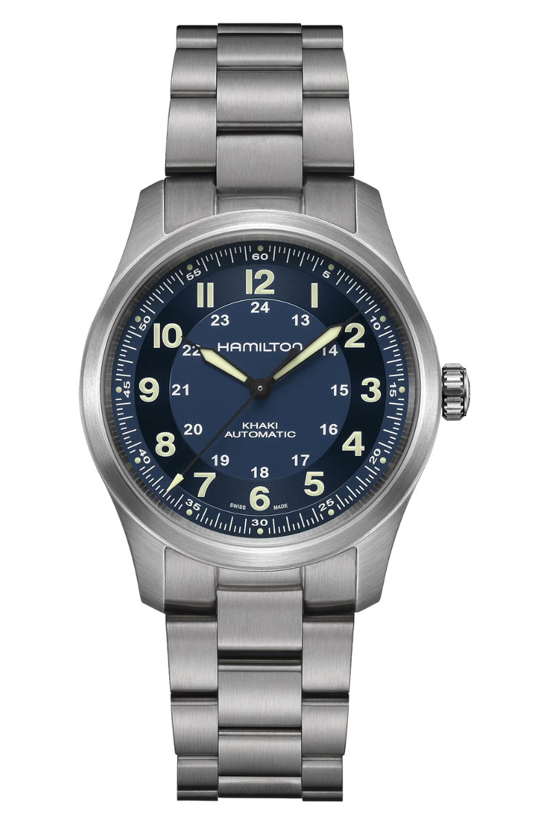 Match your next adventure to a watch that honors Hamilton’s military heritage with authentic, built-for-action style. Truly fit for life in the field, the Khaki Field Titanium Automatic is the ultimate all-purpose watch for modern heroes.