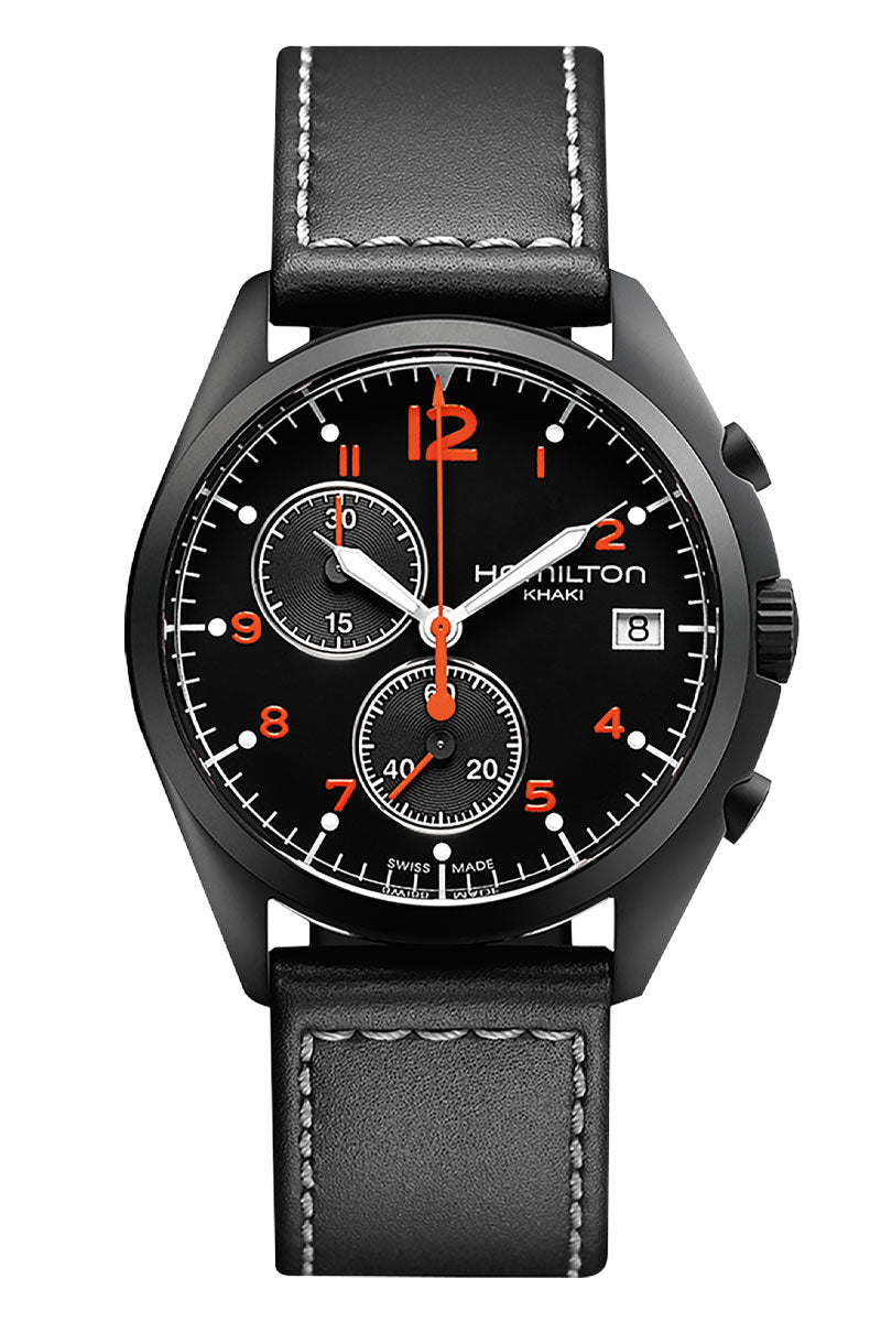 With its base in 1970s military aviation design, the Khaki Pilot Pioneer range is inspired by tradition but powered by innovation. A thoroughly modern, accurate movement ensures the Khaki Pilot Pioneer Chrono Quartz lives up to the reliability its military aviation roots promise.