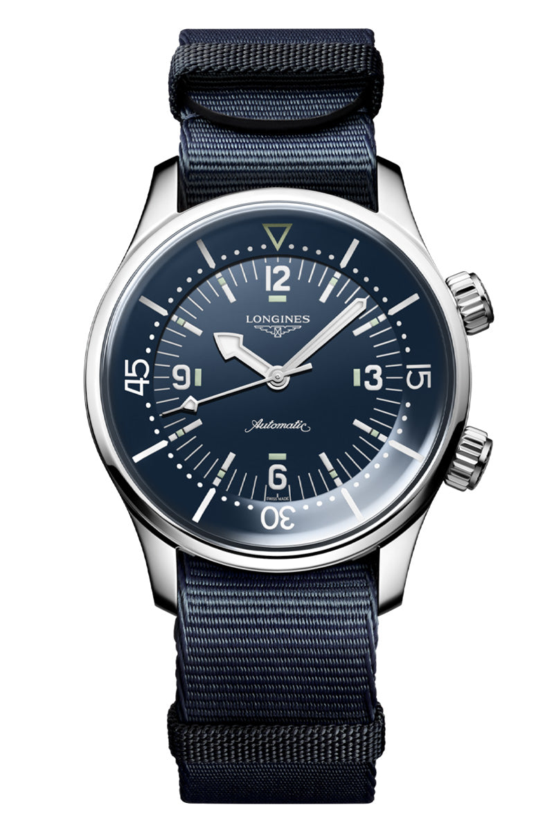 Immediately recognizable by its twin crown design and internal rotating bezel, this new Longines Legend Diver resurfaces with a 39 mm diameter, more closely adhering to the footprint of the original 1959 model from which it takes its inspiration.