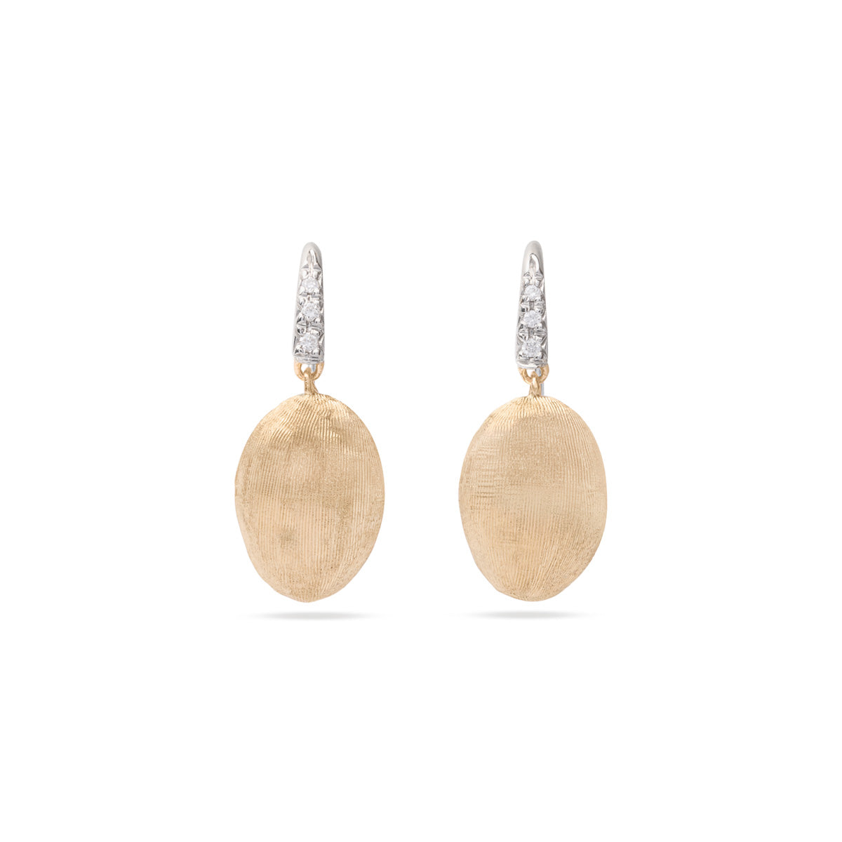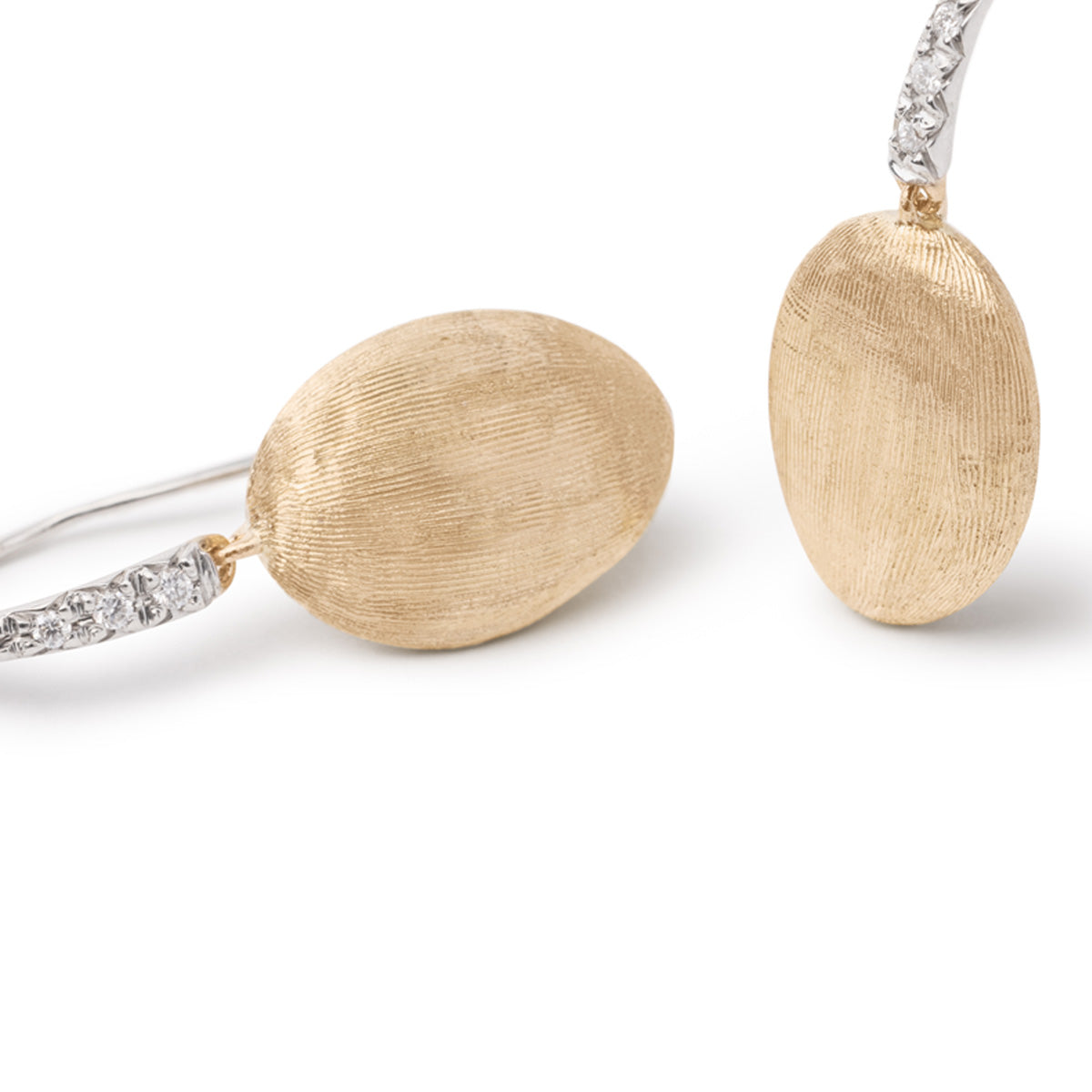 Handcrafted in Italy, these elegant drop earrings from the Siviglia collection feature 18K yellow gold and diamonds. The gold is meticulously hand engraved using the traditional Florentine Bulino tool, creating a soft, brushed texture that enhances the earrings' luminous appeal. A single diamond accent adds a touch of brilliance, making these earrings a refined choice for both day and evening wear.