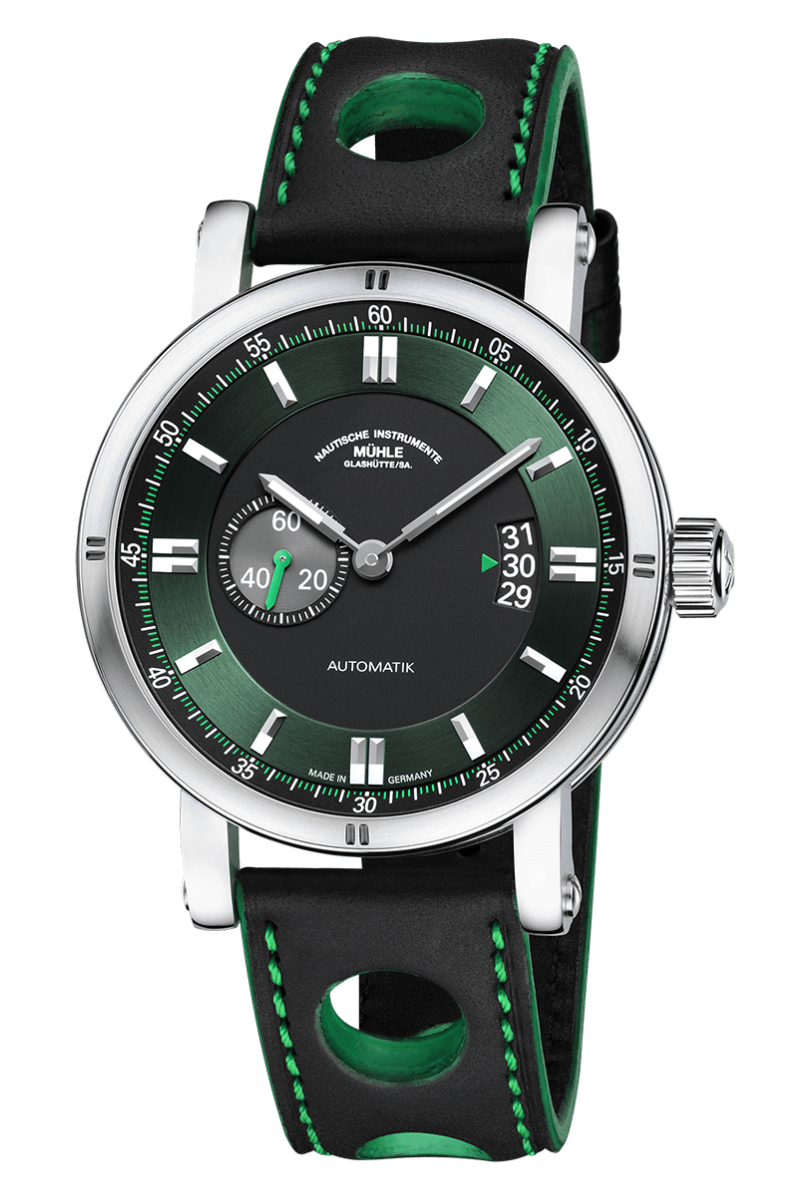From the Italian Rosso Corsa to the unpainted body of the legendary Silver Arrows: There are three colors that rapidly quicken the pulse of car lovers. The latest version of the Teutonia Sport II now manages to do this in a fine English way. Its dial and sporty leather straps feature numerous elements in British Racing Green - reminiscent of the most popular body color of British sports cars. The Teutonia Sport II thus reveals once again that the passion of great sports car legends can also live in a functional timepiece "Made in Germany.