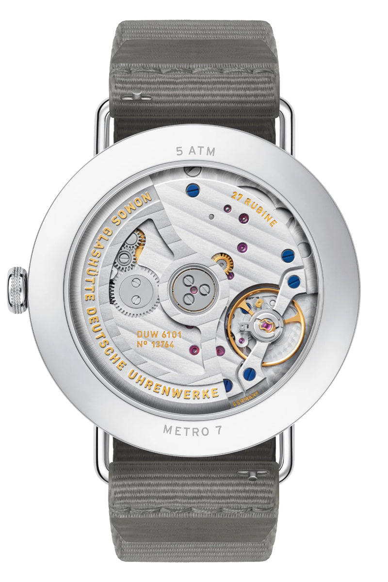 - Movement: Nomos Glashütte DUW 6101 (automatic with date)