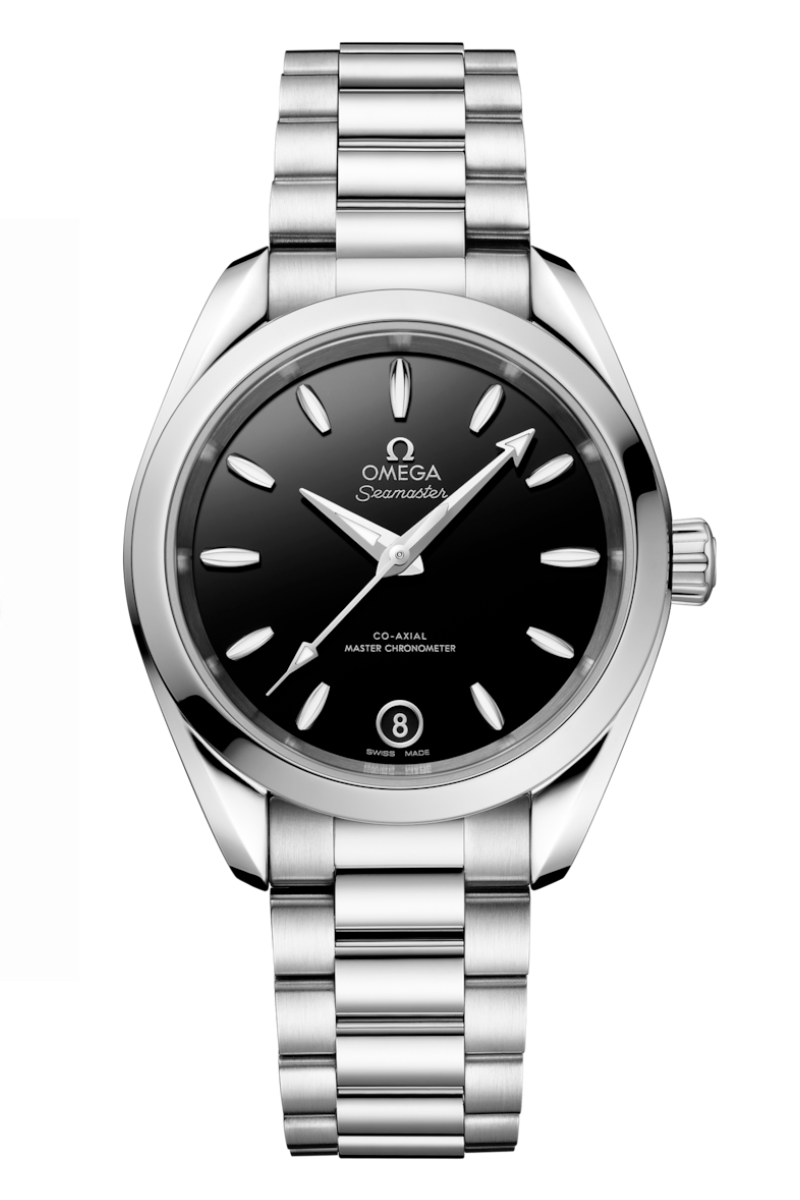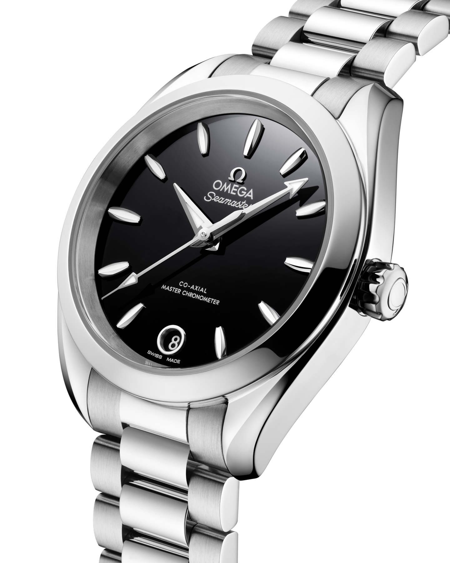 The Seamaster Aqua Terra is a superb tribute to Omega's rich maritime heritage. This 34 mm model has a symmetrical stainless-steel case with a screw-in caseback featuring a wave-edged design.