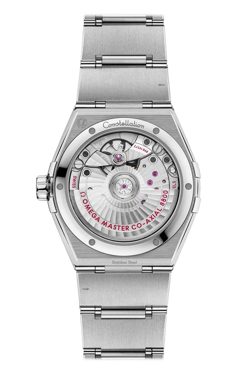 At the heart of this timepiece is the OMEGA Co-Axial Master Chronometer Calibre 8800, visible through the domed scratch-resistant sapphire crystal.