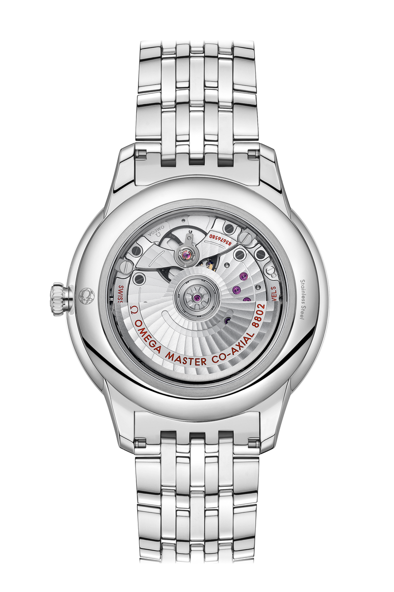 This Master Chronometer certified watch is presented on a stainless steel bracelet and is driven by the OMEGA Master Co-Axial Calibre 8802, which can be admired through the scratch-resistant sapphire crystal caseback.