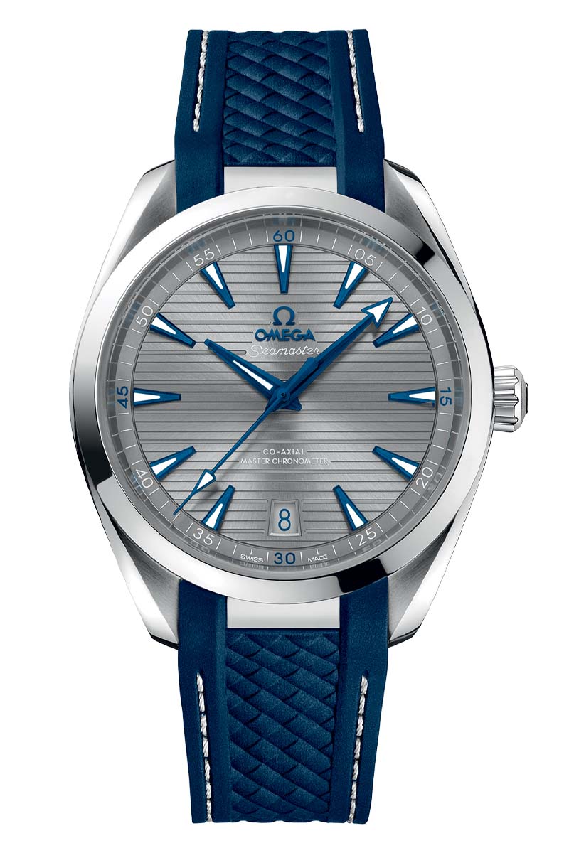 The blue strap is made from structured rubber and includes grey lining and an additional stainless steel link which integrates it to the case. This certified chronometer is powered by the OMEGA Master Chronometer calibre 8900, certified at the industry’s highest standard by the Swiss Federal Institute of Metrology (METAS).
