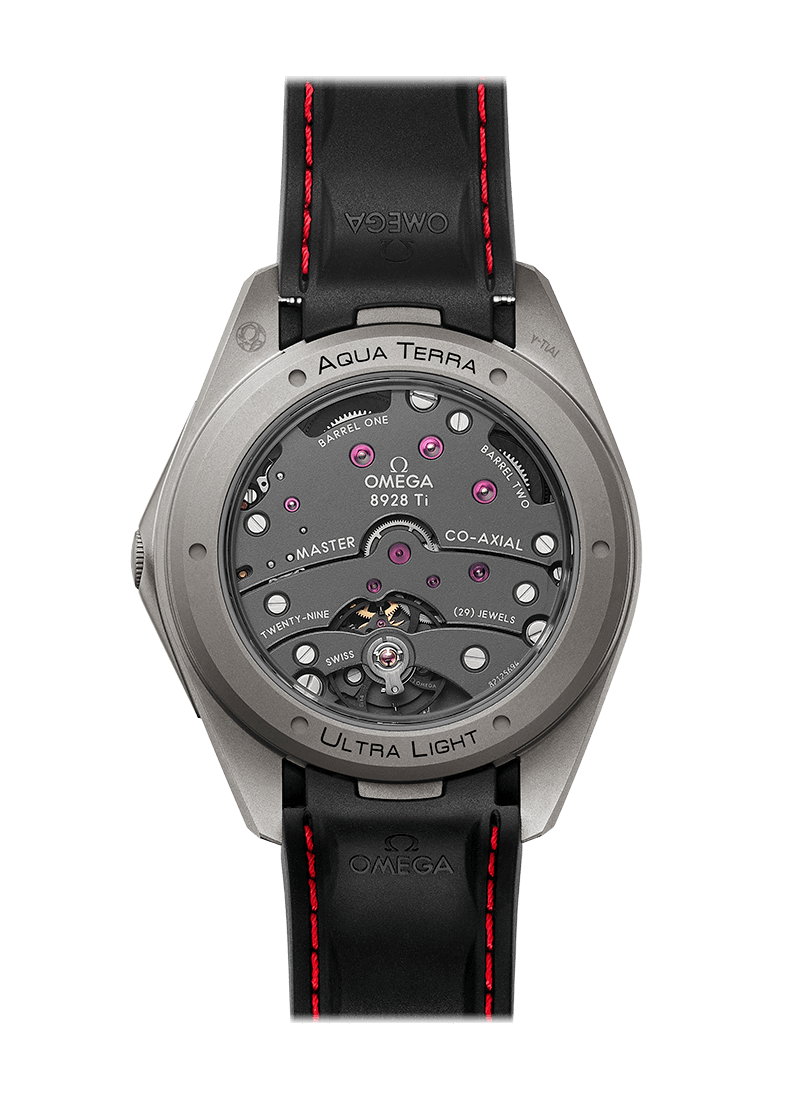 Presented on a black rubber strap, the watch includes a sandblasted grade 5 titanium dial featuring the iconic Aqua Terra stripes. When worn on the additional sporty fabric strap, the watch weighs just 55 grams.