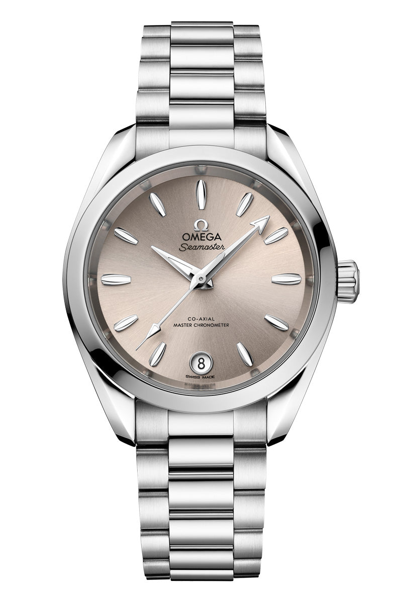 The Seamaster Aqua Terra is a superb tribute to OMEGA’s rich maritime heritage. This 34 mm model, has a symmetrical case and crown in fully polished stainless steel and a wave-edged design featured on the back.