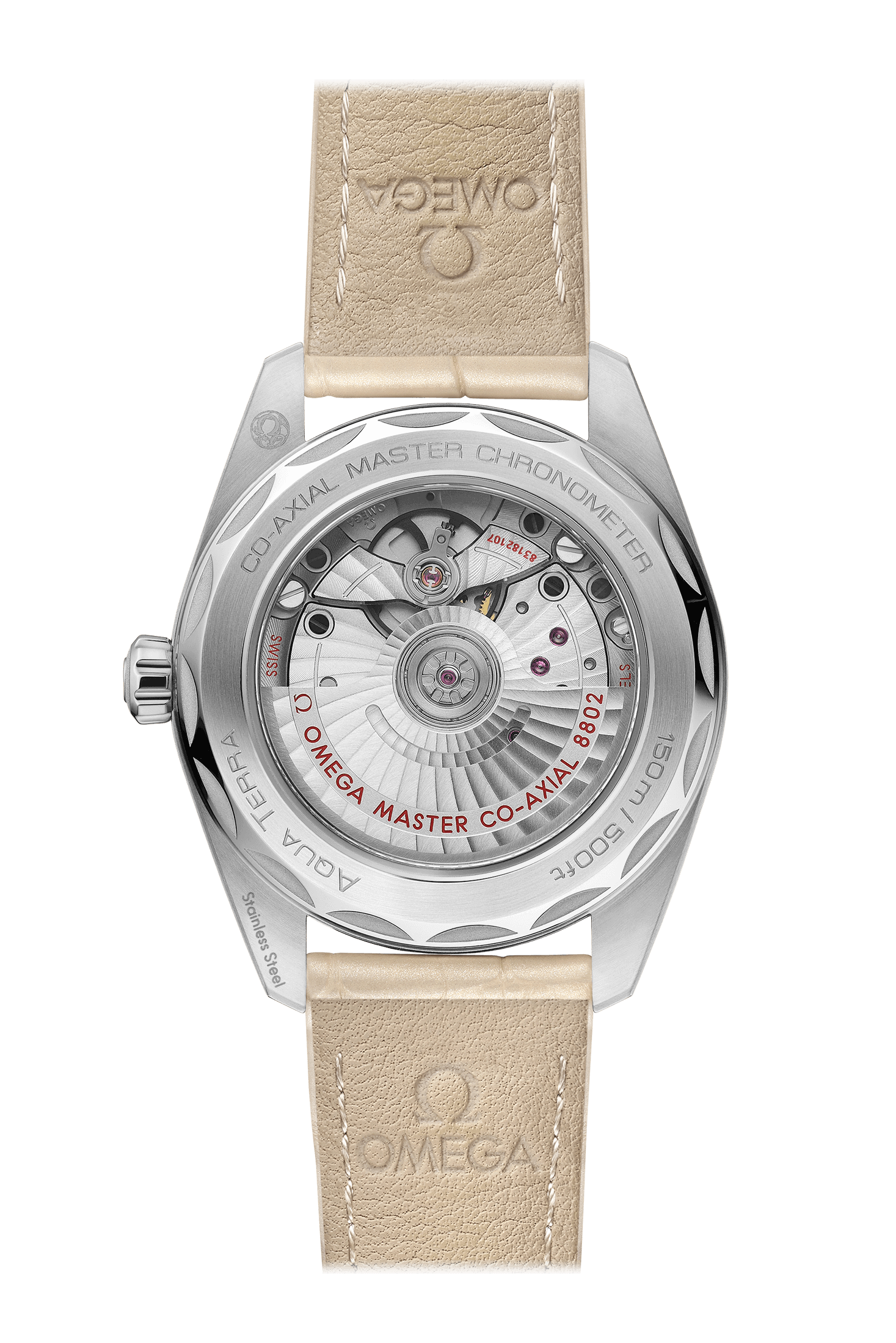 The Seamaster Aqua Terra is a superb tribute to OMEGA’s rich maritime heritage. In this 38 mm model, the symmetrical case has been crafted from stainless steel, with a wave-edged design featured on the caseback.