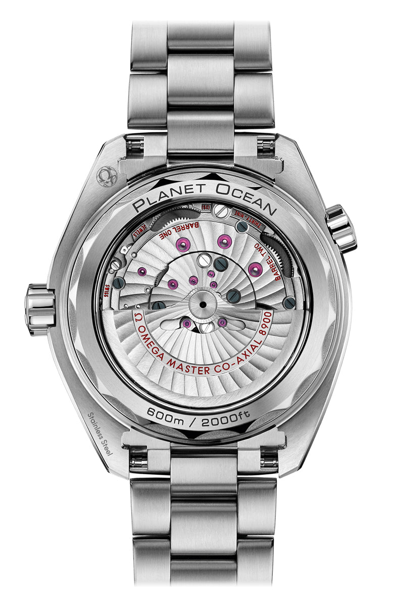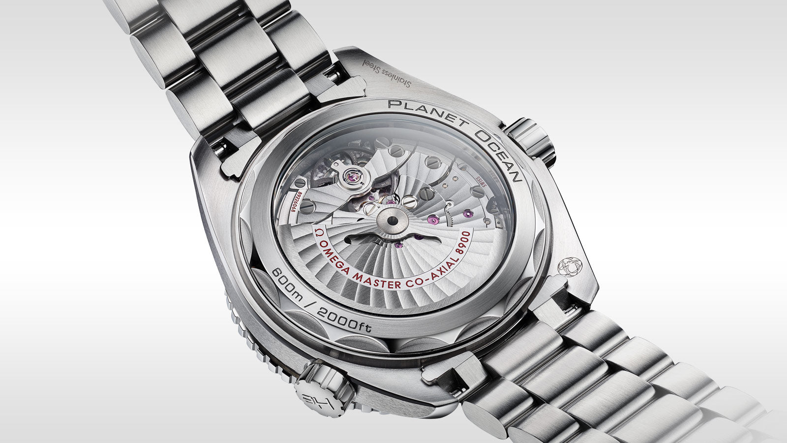 Other features include an alveol screw-in caseback and an integrated stainless steel bracelet with patented extendable foldover clasp and diver extension. The watch is water resistant to 600 meters and has a manual helium-escape valve at 10:00. The Omega Master Chronometer calibre 8900 at the heart of this timepiece can be seen through the transparent caseback. To achieve Master Chronometer status, it has passed the 8 rigorous tests set by METAS (The Swiss Federal Institute of Metrology).