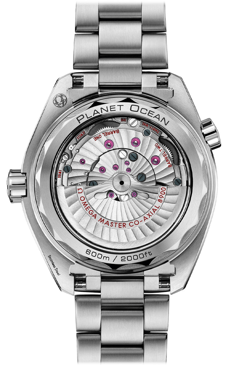 The OMEGA Seamaster Planet Ocean 600M Master Chronometer is water resistant to 600 metres / 2000 feet / 60 bar, and has a helium-escape valve. The OMEGA Master Chronometer calibre 8900 at the heart of this timepiece can be seen through the transparent caseback. To achieve Master Chronometer status, it has passed the 8 rigorous tests set by METAS (The Swiss Federal Institute of Metrology).