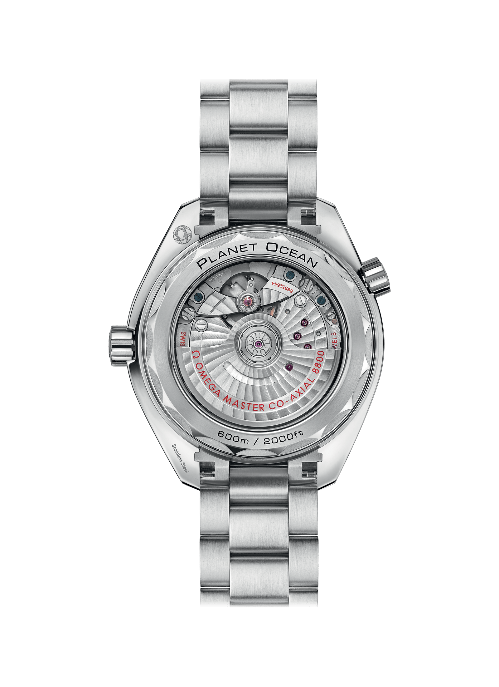 Other features include an alveol screw-in caseback and a stainless steel bracelet with patented extendable foldover clasp. The OMEGA Seamaster Planet Ocean 600M Master Chronometer is water resistant to 600 meters / 2000 feet / 60 bar, and has a helium-escape valve. The OMEGA Master Chronometer calibre 8800 at the heart of this timepiece can be seen through the transparent caseback. To achieve Master Chronometer status, it has passed the 8 rigorous tests set by METAS (The Swiss Federal Institute of Metrology).