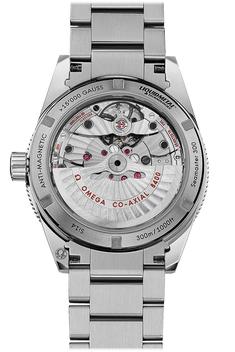 The 41 mm stainless steel case is presented on a stainless steel and 18K Sedna™ gold bracelet. A transparent caseback makes it possible to see the anti-magnetic OMEGA Master Co-Axial calibre 8400 within.
