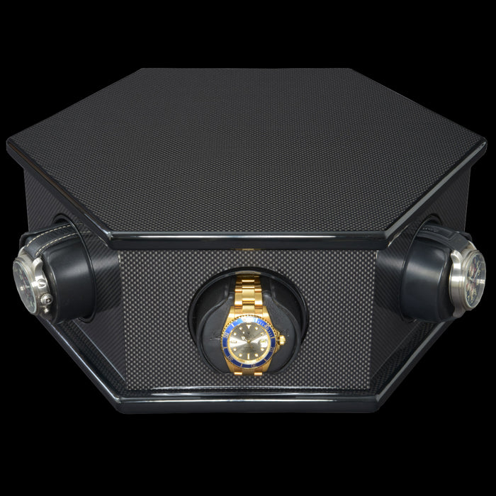 Crafted with precision and elegance in mind, the CAROLO™ Watch Winder features carbon fiber panels that not only provide durability but also add a touch of modern luxury to your watch storage solution. The synergy of form and function is unmistakable, making it a stunning addition to any environment.
