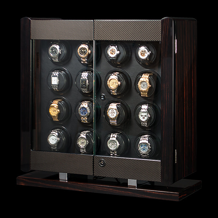The Avanti Series caters to collectors of all scales with offerings such as the Avanti 12 and 16. Crafted in Italy, these lockable cabinets feature exotic Macassar veneers and genuine carbon fiber accents, promising not only secure storage but also a touch of refined luxury. For those desiring a more compact option, the Avanti 6 emerges as our most popular winder. Designed meticulously to wind 6 watches, it comes equipped with two storage drawers that merge convenience with sophistication.