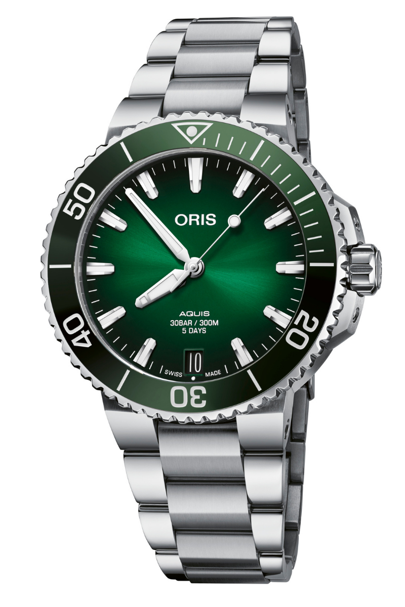 The Holstein-based manufacture's most stylish dive watch is now available in a 41.5mm case – the idealized modern size for dive watch fans the world over. And inside this new Aquis is the Oris Calibre 400, is a highly accurate, highly anti-magnetic, highly reliable movement with a generous five-day power reserve. It also is backed by a 10-year recommended service intervals and a 10-year warranty.