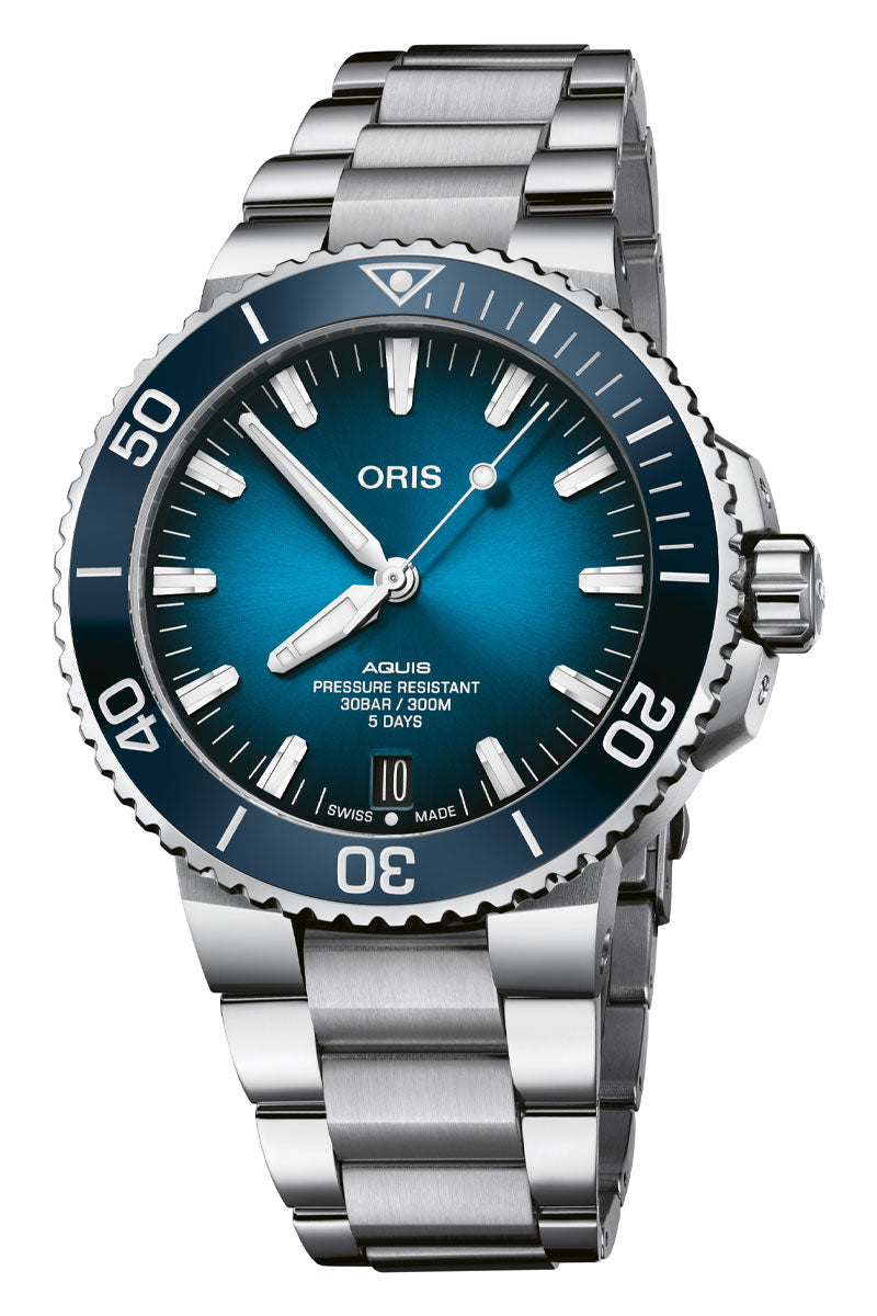 Its 43.5mm case is fitted with Oris' new quick-change strap system, which facilitates the easy removal and change of bracelet or strap without tools. And true form for the Aquis' purpose-built capability, this new reference is water resistant to 300 meters.