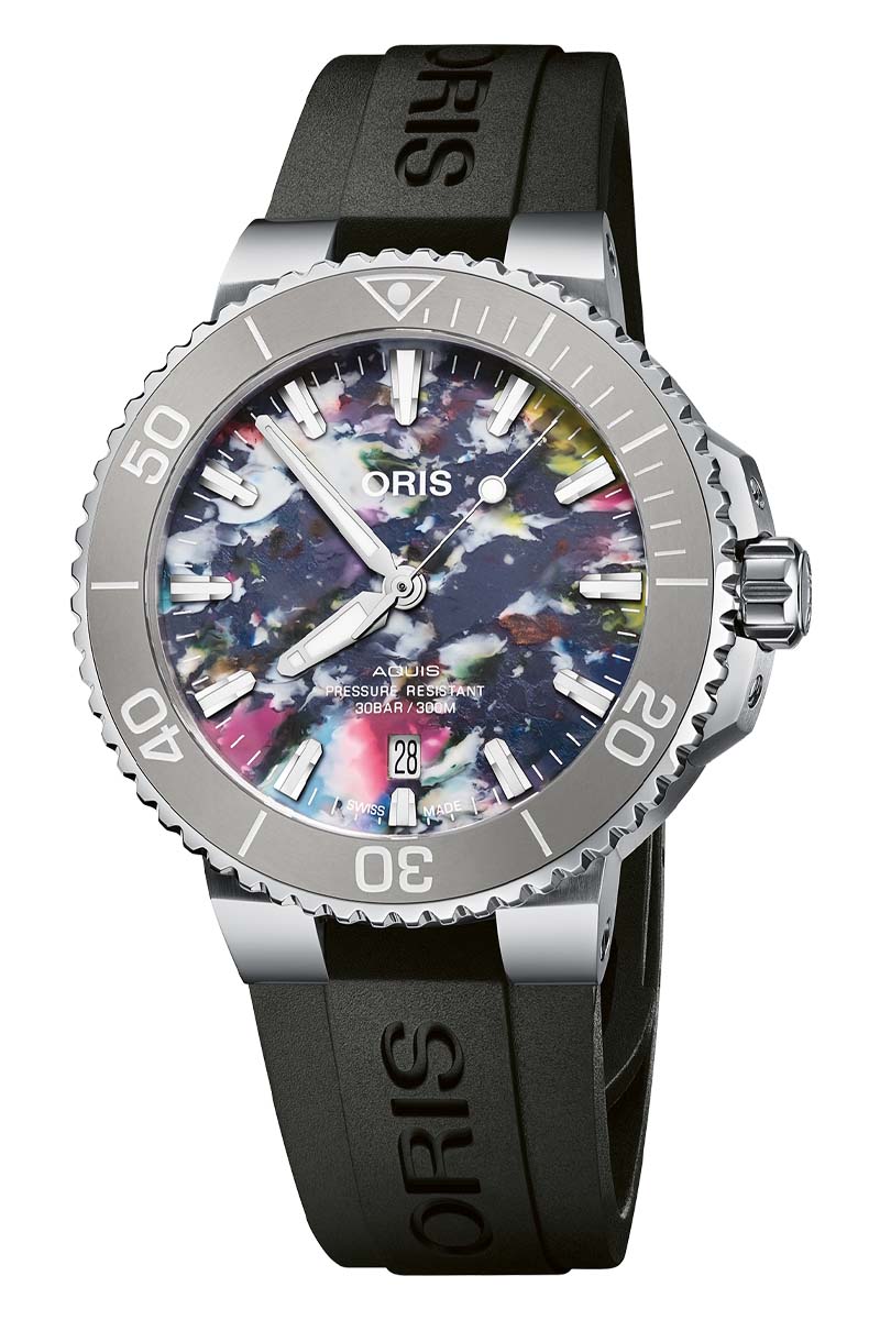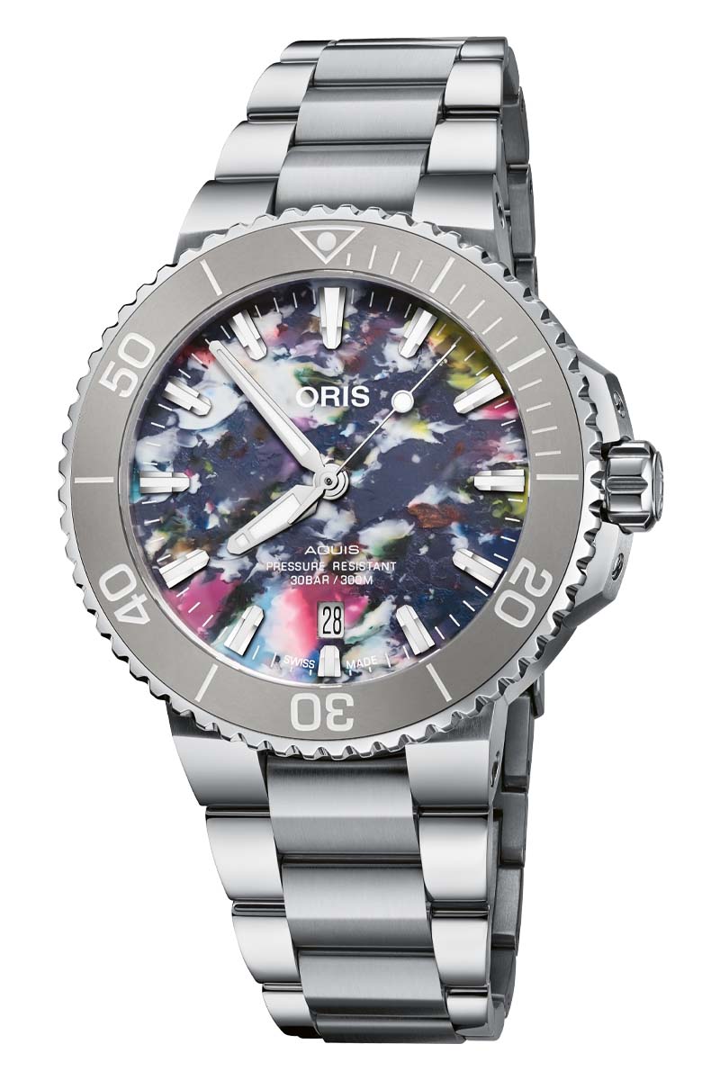 The PET plastic recycling process produces random patterns, meaning no two dials are the same, making each watch a uniquely artful piece in its own right. Oris has also wisely chosen not to limit the production of this special model, pledging to produce this Aquis for as long as there is demand, in hopes that Oris fans and the global watch collecting community will join the Holstein brand's mission of Change for the Better to help drive awareness and reduce the world's ocean plastic crisis.